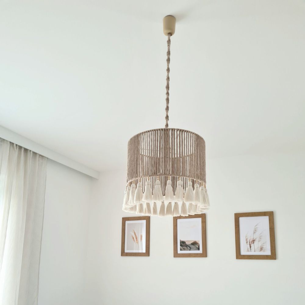 Dodaj przytulny, boho akcent do swojego wnętrza dzięki lampie sufitowej w eleganckim beżowym kolorze z dekoracyjnymi frędzlami. To idealna propozycja do pokoju dziecięcego – wprowadza ciepło, styl i wyjątkowy klimat, który pokochasz od pierwszego wejrzenia. Wyobraź sobie wieczór, gdy pokój Twojego dziecka wypełnia miękkie światło, a wnętrze nabiera harmonii i wyrafinowanej elegancji. Lampa dziecięca boho z frędzlami to nie tylko źródło światła, to subtelny akcent, który zamienia codzienne rytuały w chwile pełne spokoju.