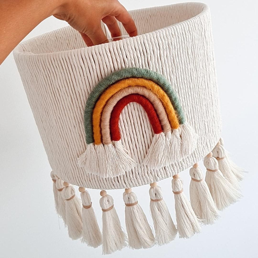 Wprowadź magię do pokoju dziecięcego dzięki tej wyjątkowej lampie sufitowej, która łączy oryginalne wzornictwo z subtelną, neutralną kolorystyką. Abażur wykonany został techniką makramy, co nadaje mu unikalny charakter i artystyczny wygląd. Naturalne barwy – zielony, czerwony, beżowy i musztardowy – tworzą harmonijną kompozycję, która idealnie wpasowuje się w dziecięce wnętrza utrzymane w stonowanych tonacjach.
