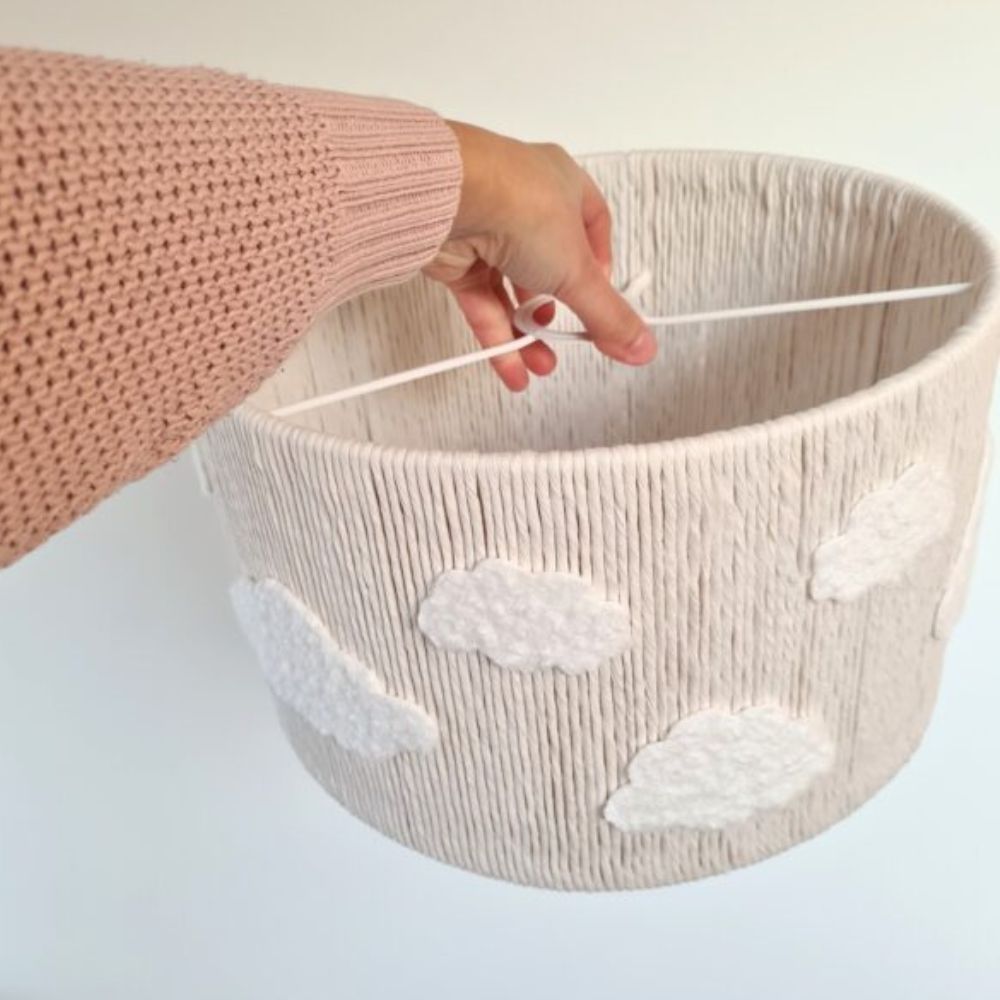 Jasna, kremowa kolorystyka i motyw chmurek to zestawienie, które idealnie wpisuje się w najnowsze trendy wnętrzarskie. Lampa doskonale dopełni pokój w stylu boho, skandynawskim czy minimalistycznym. Dzięki swojej strukturze, światło przebijające przez sploty sznurka jest miękkie i rozproszone – idealne do wieczornego czytania bajek i budowania poczucia bezpieczeństwa u malucha.