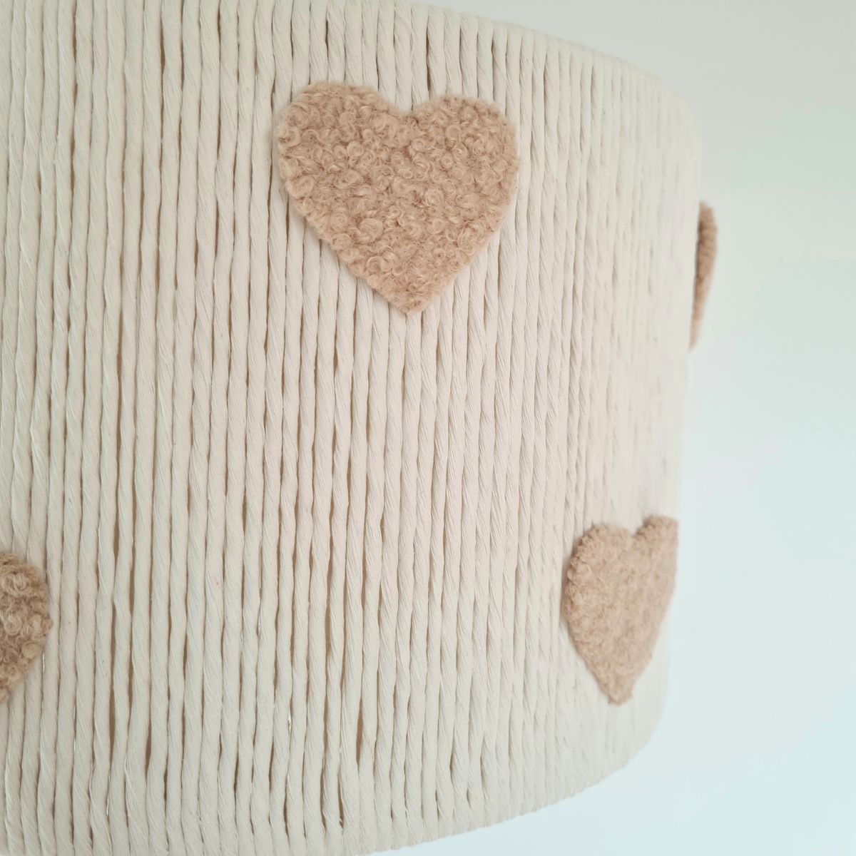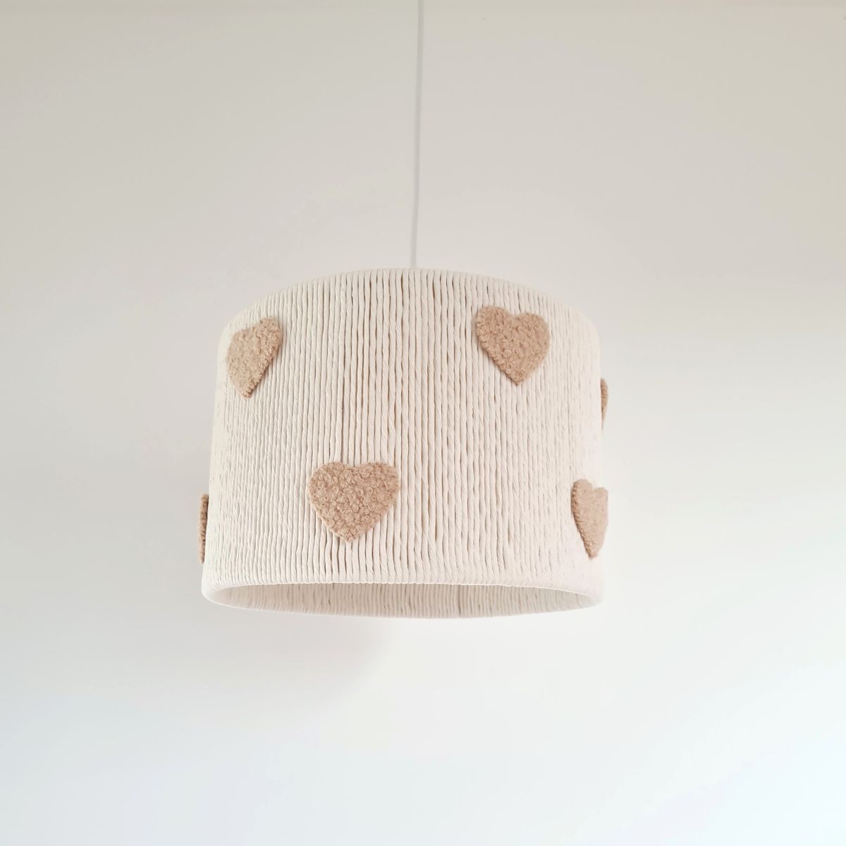 Klosz wykonano z najwyższą starannością, używając naturalnego sznurka bawełnianego oraz miękkiego, przytulnego materiału typu "baranek". Dzięki temu nie tylko wygląda stylowo, ale również nadaje wnętrzu ciepły, przyjazny charakter.