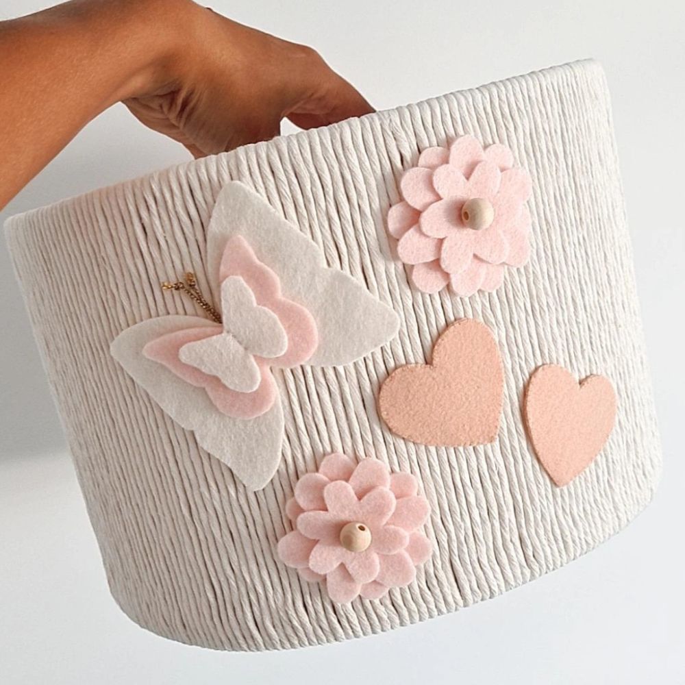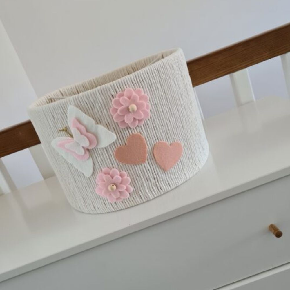 - unikatowy design z filcowym motylkiem, sercami i różowymi kwiatkami