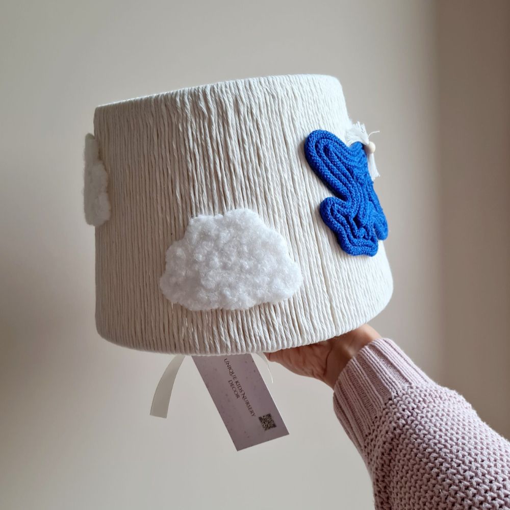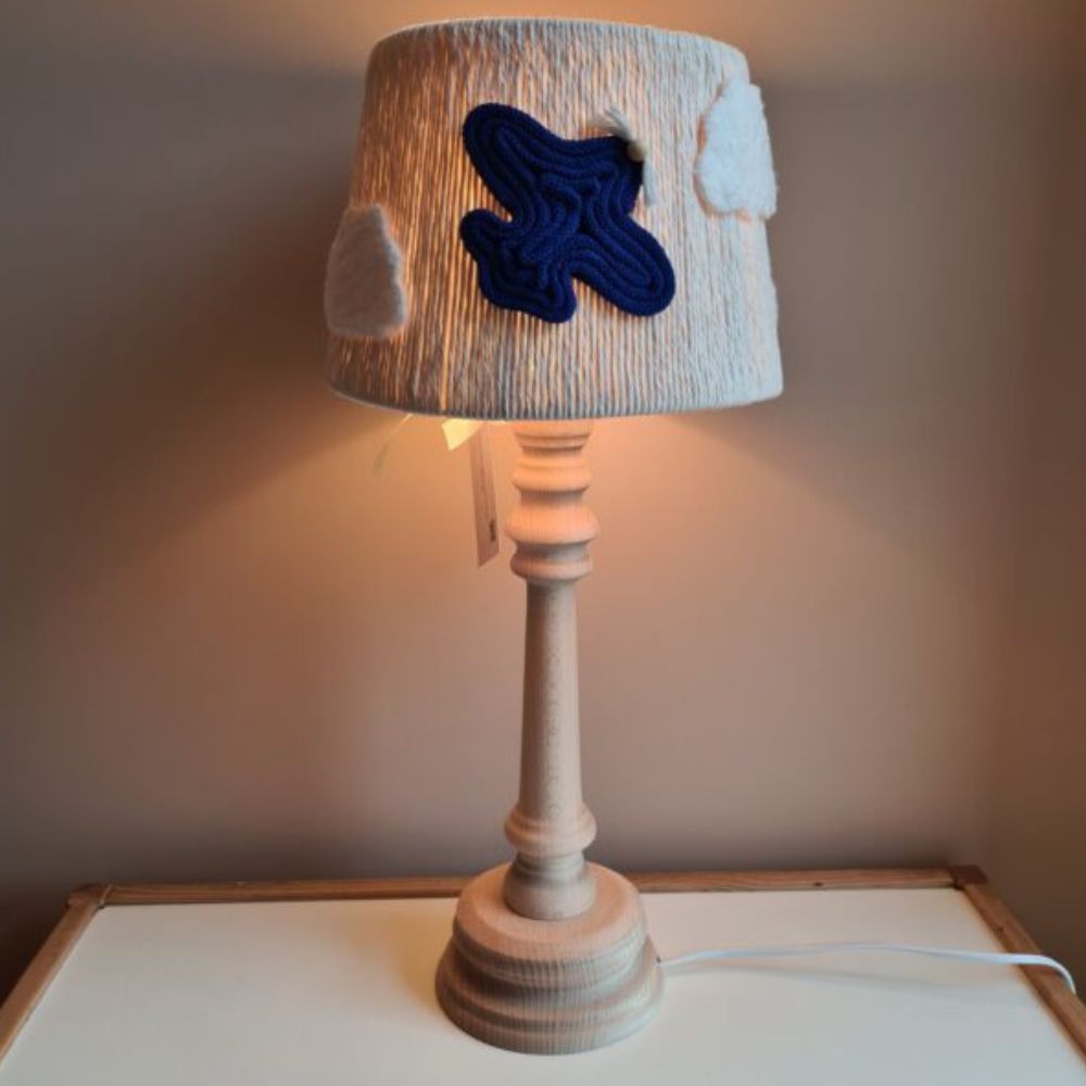 Zapewnij swojemu dziecku oświetlenie, które rozpala wyobraźnię i koi zmysły po dniu pełnym wrażeń. Lampka nocna Samolot to unikatowa kompozycja, w której centrum znajduje się niebieski płatowiec wykonany ręcznie z bawełnianego sznurka. W otoczeniu puszystych, filcowych chmurek, samolot zdaje się płynąć przez pokój, wprowadzając bajkową atmosferę i ciepło. To nie tylko lampka – to zaproszenie do świata wielkich podróży i najpiękniejszych snów.