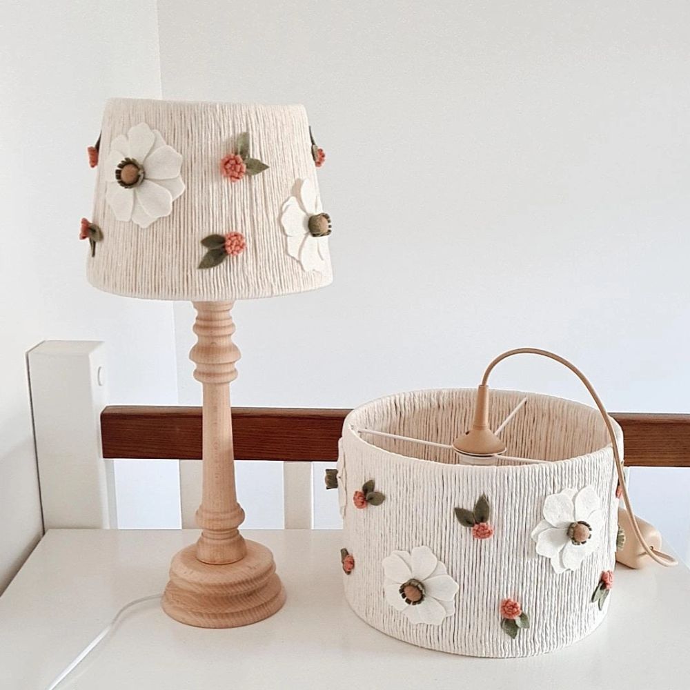 Połączenie surowego drewna bukowego ze strukturą bawełnianego sznurka i miękkością filcowych kwiatów tworzy niezwykle zmysłową i estetyczną całość. Lampka doskonale komponuje się z wnętrzami w stylu skandynawskim, rustykalnym oraz nowoczesnym boho. Jest na tyle uniwersalna, że ozdobi szafkę nocną niemowlaka, jak i komodę starszej dziewczynki, stając się pamiątką na długie lata.
