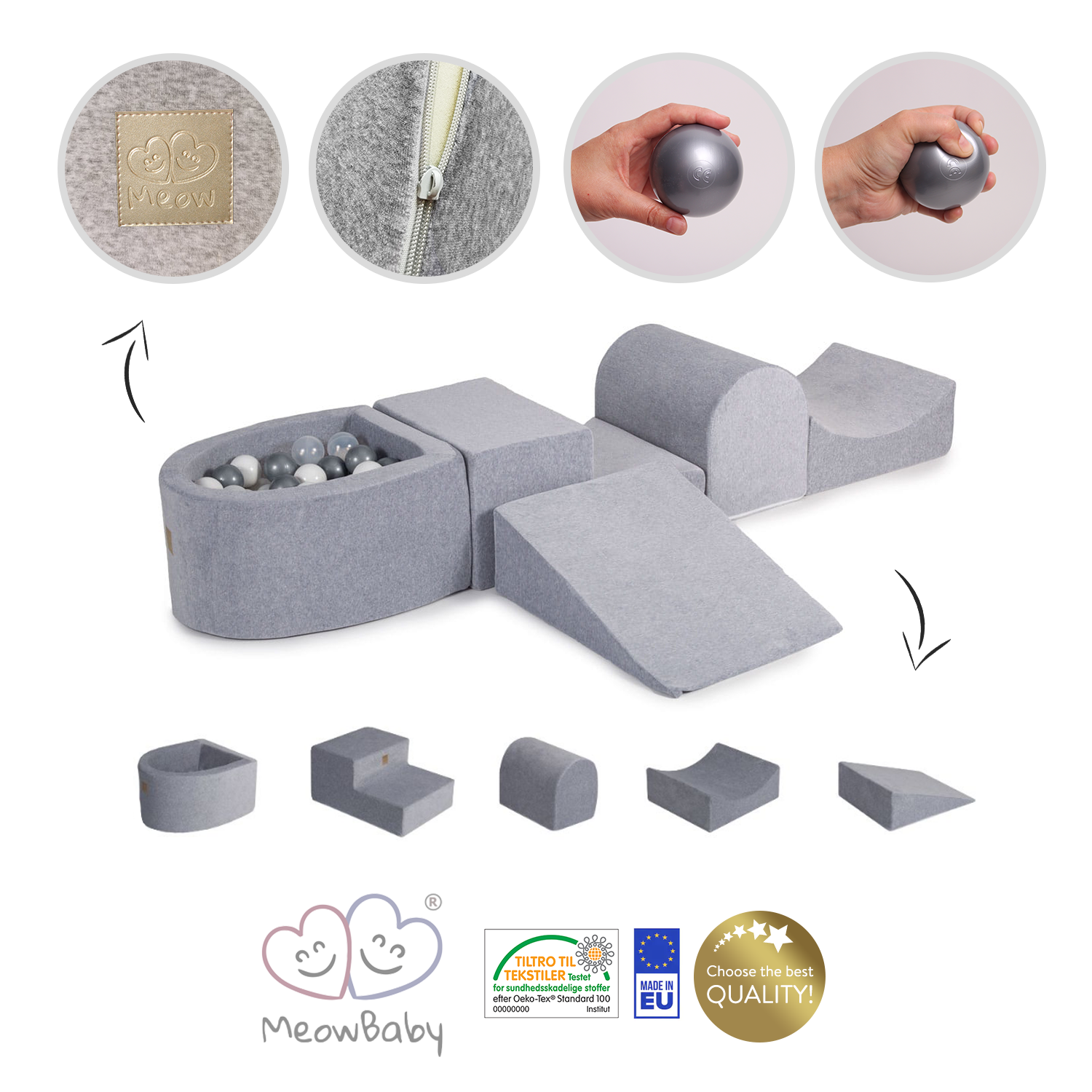 MEOW BABY - PIANKOWY ZESTAW DO ZABAWY Z BASENEM Z PIŁECZKAMI JASNOSZARY