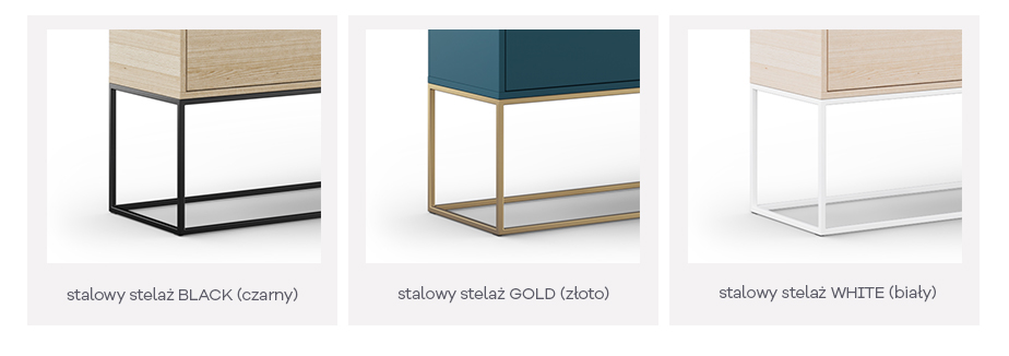 STELAŻ (nogi mebla) jest wykonany ze stali, możesz wybrać ulubiony odcień - czarny, biały lub złoty.
