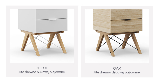 Stelaż (boki mebla) jest wykonany z litego drewna, możesz wybrać ulubiony odcień: