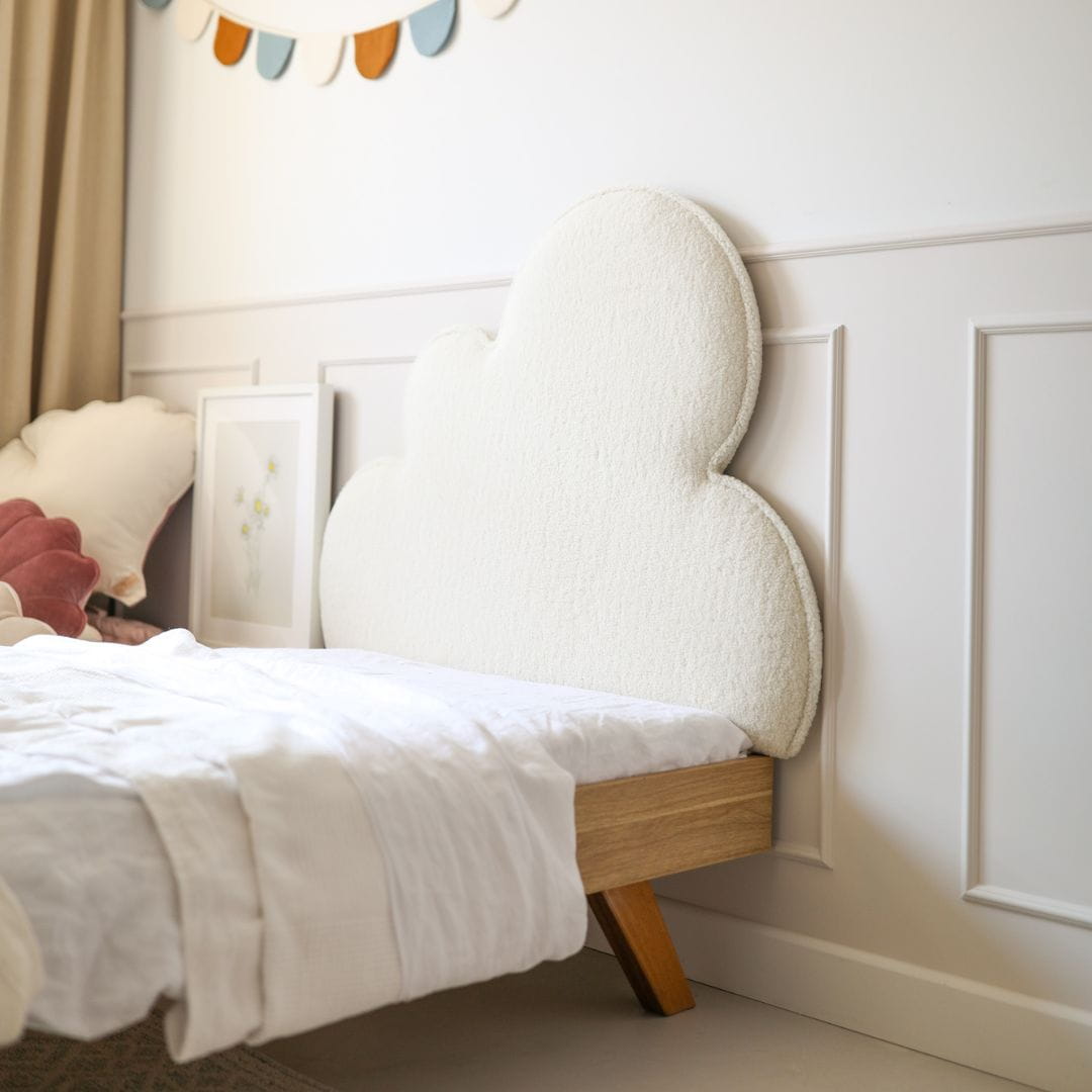 Preferowane ustawienie łóżka zagłówkiem do ściany. Tył zagłówka wykończony jest czarną lub białą tkaniną tapicerską. Zagłówek w kształcie chmurki można zamówić w wersji Standard (wystaje poza ramę łóżka) lub w wersji Slim ( nie wystaje poza ramę łóżka).