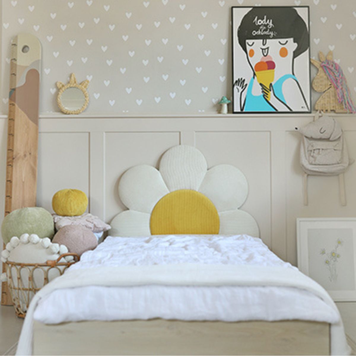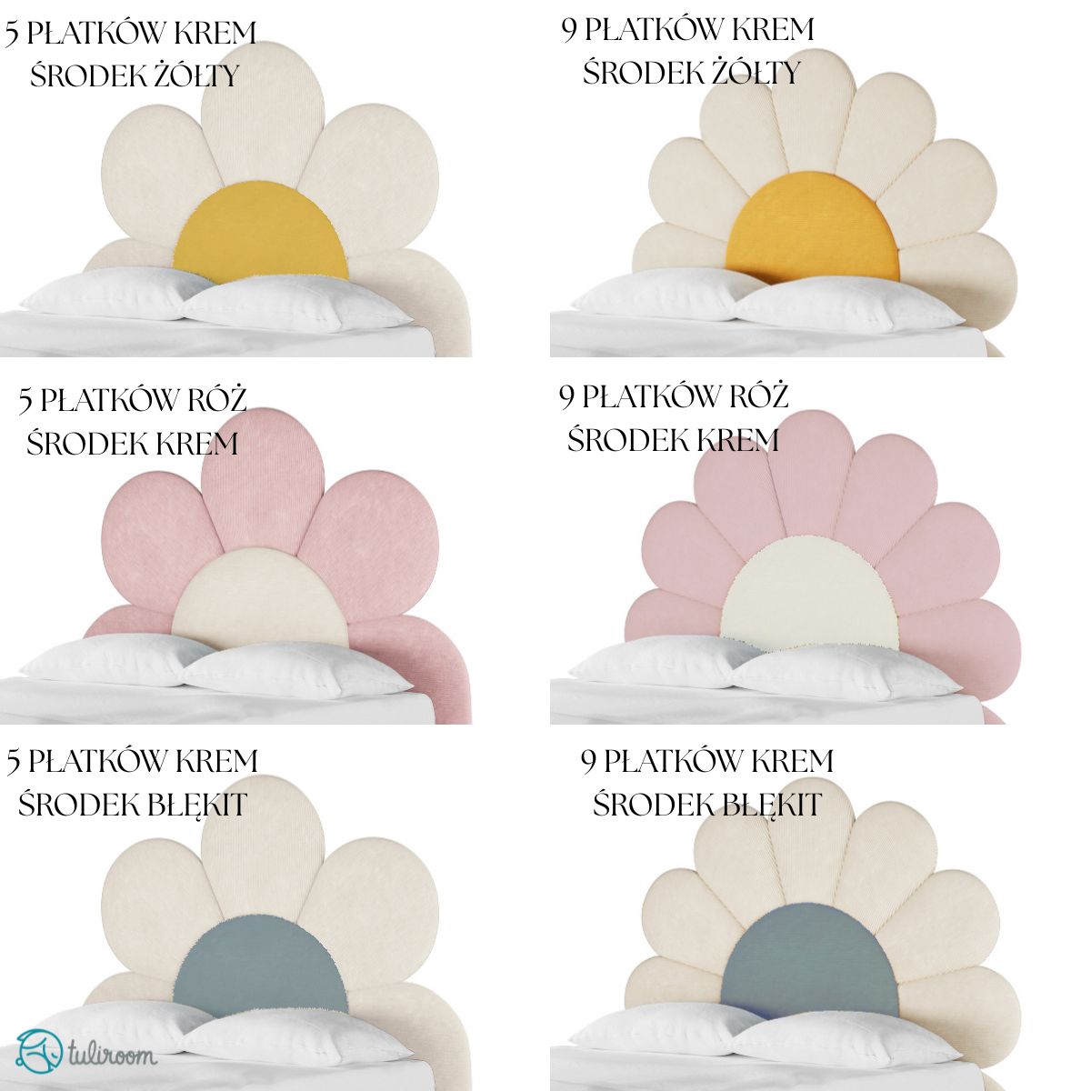 Zagłówek łóżka możesz dostosować do własnych upodobań i wystroju wnętrza. Dostępnych jest kilka wersji kolorystycznych, które znajdziesz w galerii produktu – dzięki temu bez trudu dopasujesz łóżko do stylu pokoju Twojego dziecka. Dodatkowo możesz wybrać ilość płatków stokrotki – 5 lub 9, tworząc wyjątkowy, spersonalizowany wygląd mebla.