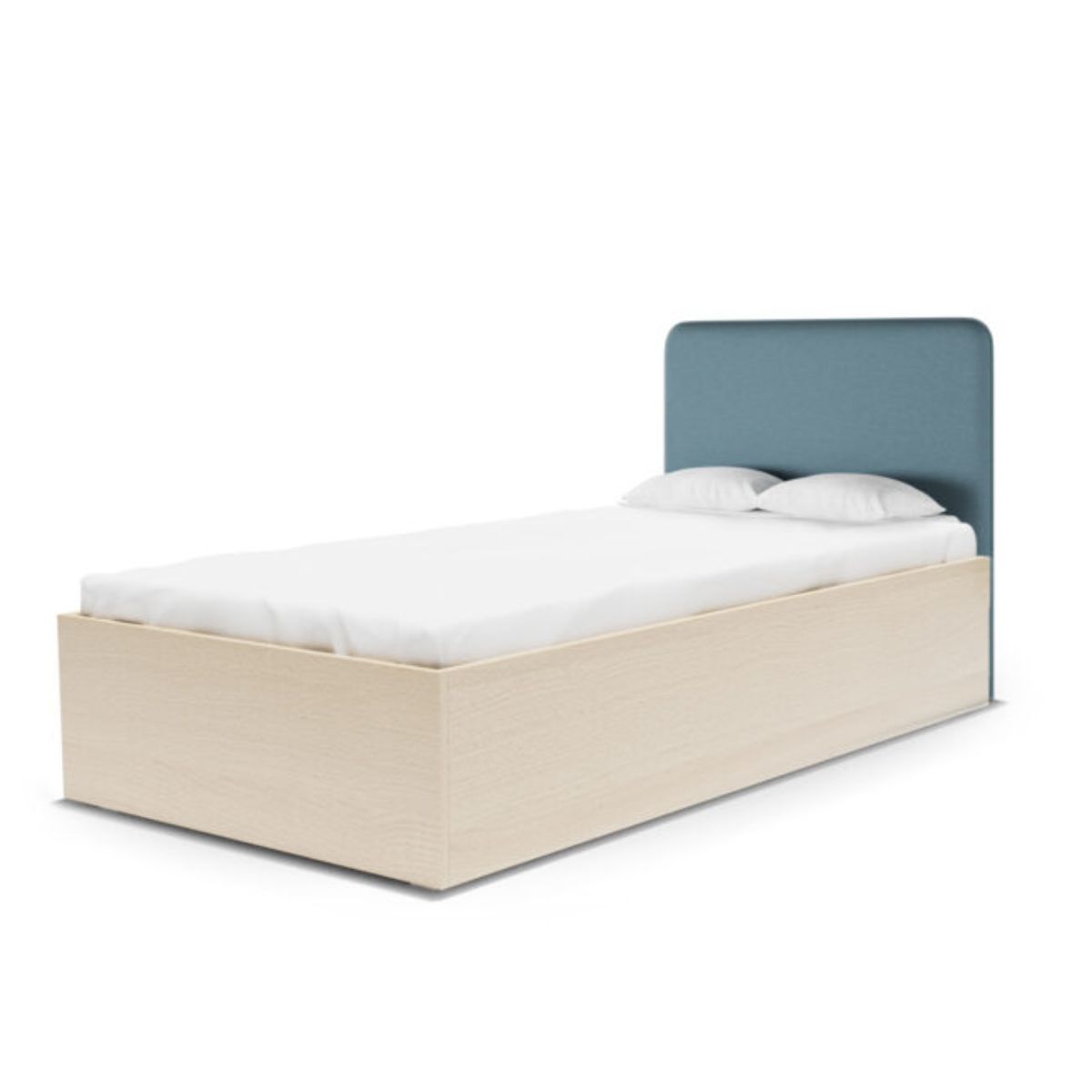 Preferowane ustawienie łóżka zagłówkiem do ściany. Tył zagłówka wykończony jest czarną lub białą tkaniną tapicerską.