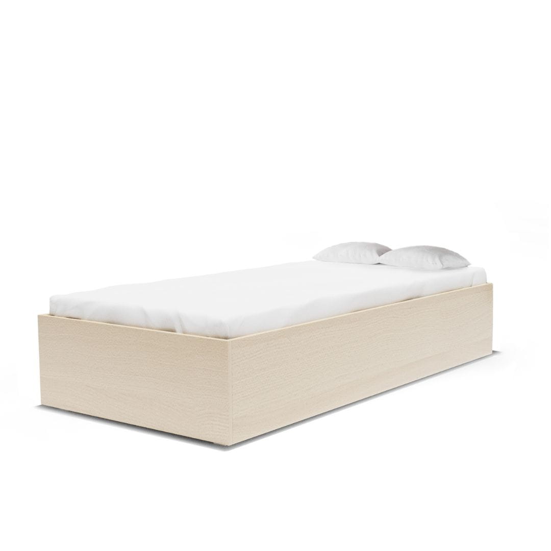 Łóżko ma w zestawie żeberkowy, strefowy, elastyczny stelaż pod materac, który ,,pracuje” razem z materacem, zapewniając komfort podczas snu. Stelaż jest wykonany ze sklejkowych listewek, do samodzielnego złożenia. Materac nie znajduje się w zestawie. Sugerujemy wybrać materac wysokiej jakości, o wysokości minimum 20 cm, z precyzyjnie wykończonymi narożnikami. Materac nietrzymający wymiaru lub o obłym kształcie może nie wpasować się w ramę łóżka, tworząc puste i nieestetyczne przestrzenie.