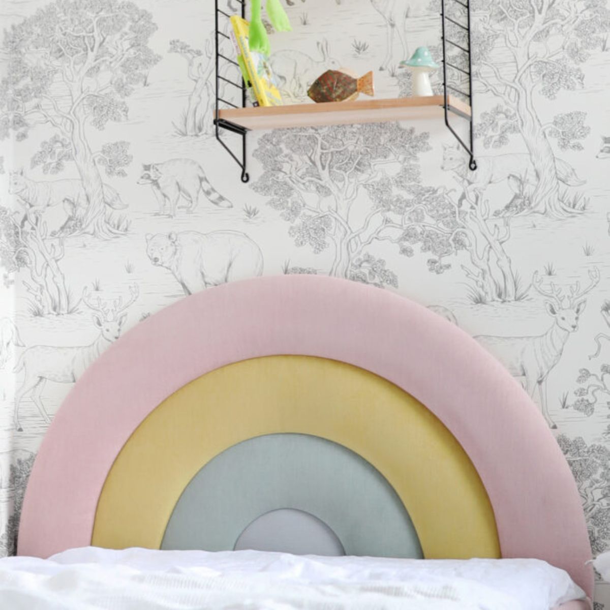 Zagłówek w kształcie tęczy, który dodaje łóżku wyjątkowego charakteru, dostępny jest w czterech starannie dobranych paletach kolorystycznych. Możesz wybierać spośród: