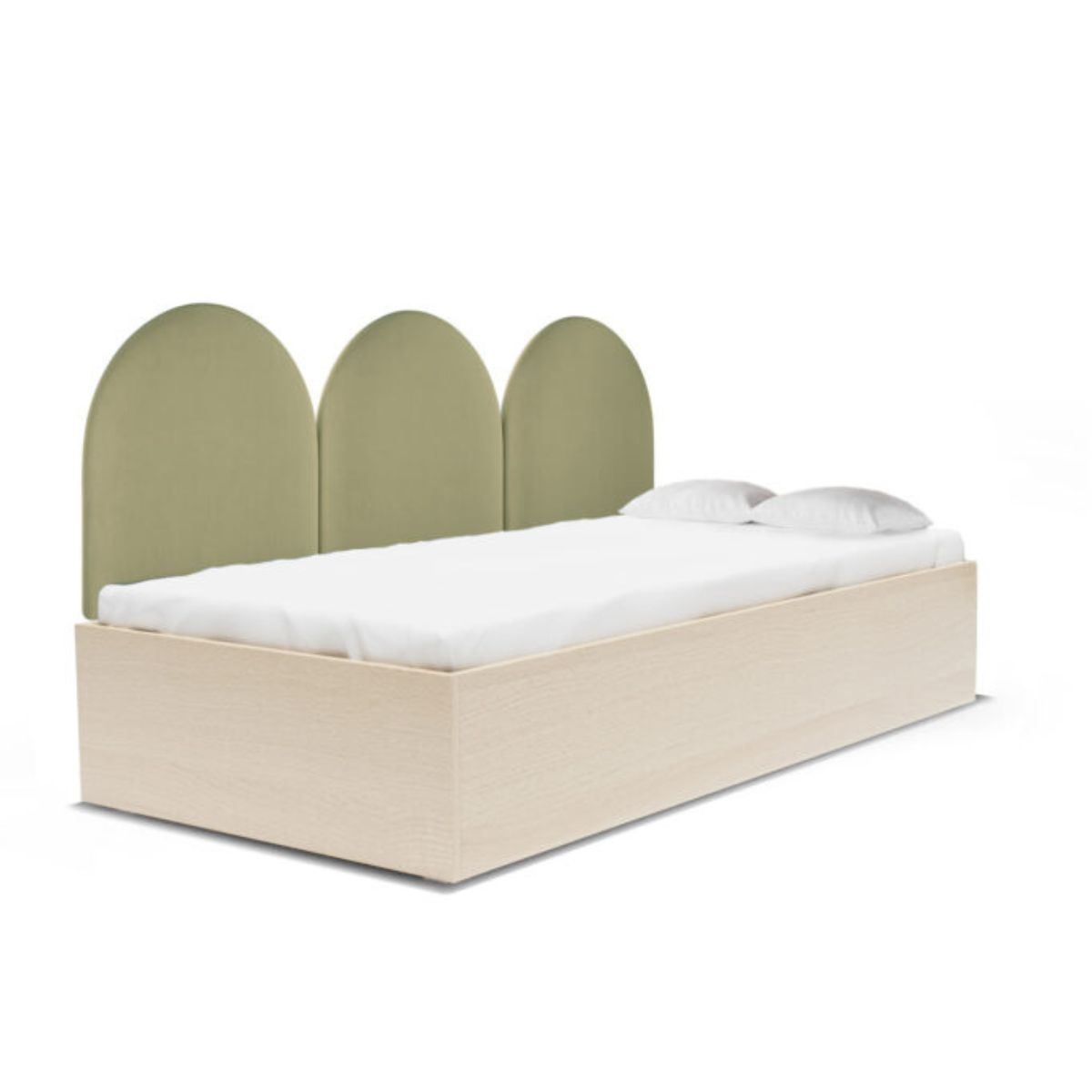 Preferowane ustawienie łóżka zagłówkiem do ściany. Tył zagłówka wykończony jest czarną lub białą tkaniną tapicerską.