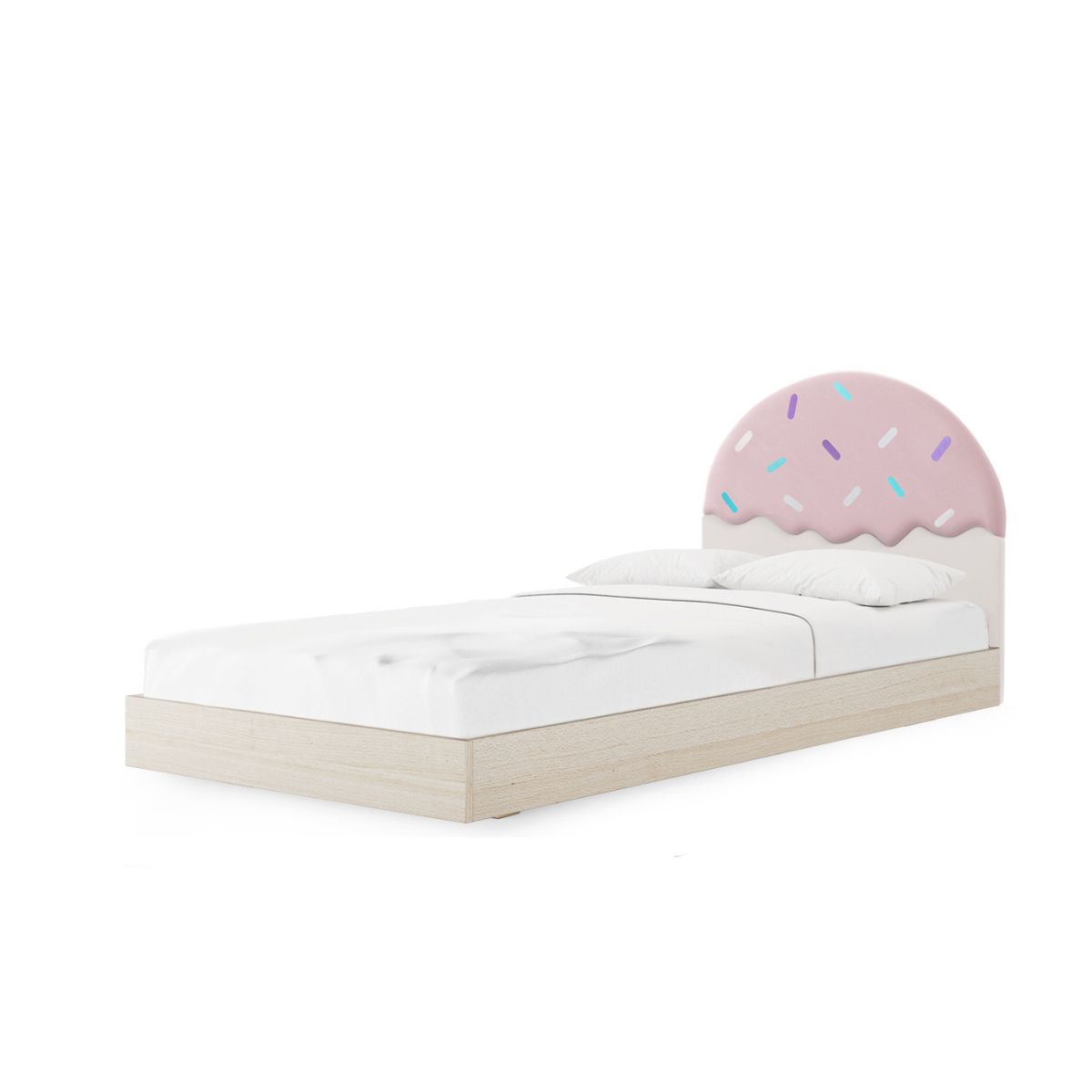 Łóżko ma w zestawie żeberkowy, strefowy, elastyczny stelaż pod materac, który ,,pracuje” razem z materacem, zapewniając komfort podczas snu. Stelaż jest wykonany ze sklejkowych listewek, do samodzielnego złożenia. Materac nie znajduje się w zestawie. Sugerujemy wybrać materac wysokiej jakości, o wysokości minimum 20 cm, z precyzyjnie wykończonymi narożnikami. Materac nietrzymający wymiaru lub o obłym kształcie może nie wpasować się w ramę łóżka, tworząc puste i nieestetyczne przestrzenie.