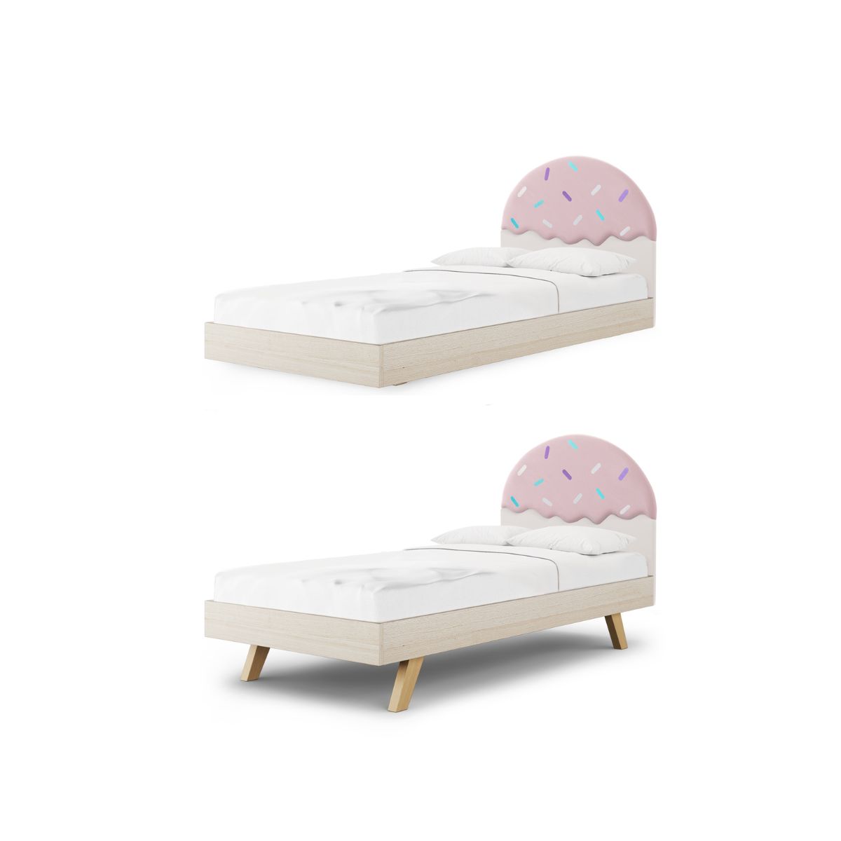 Łóżko może mieć dwie wysokości drewnianych nóżek: