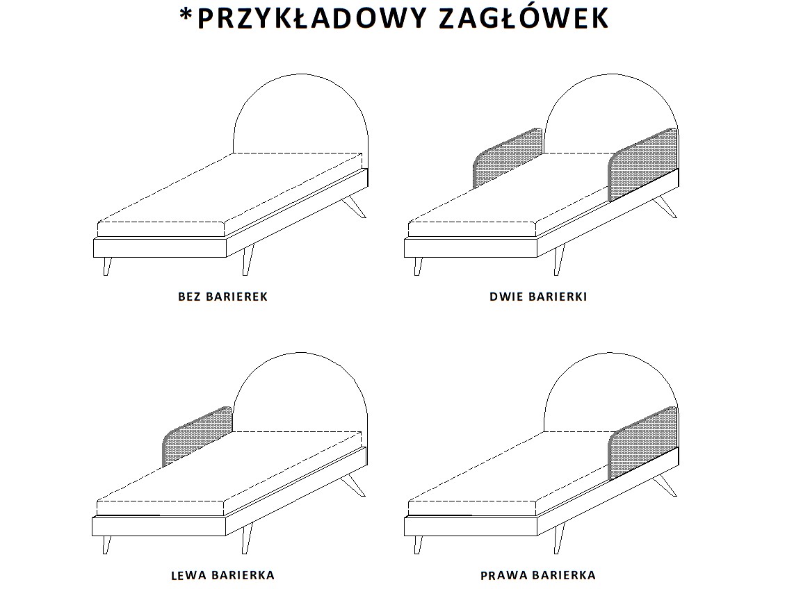 - szerokość zagłówka 97 cm lub 127 cm (dostosowana do szerokości powierzchni spania 90 cm lub 120 cm)