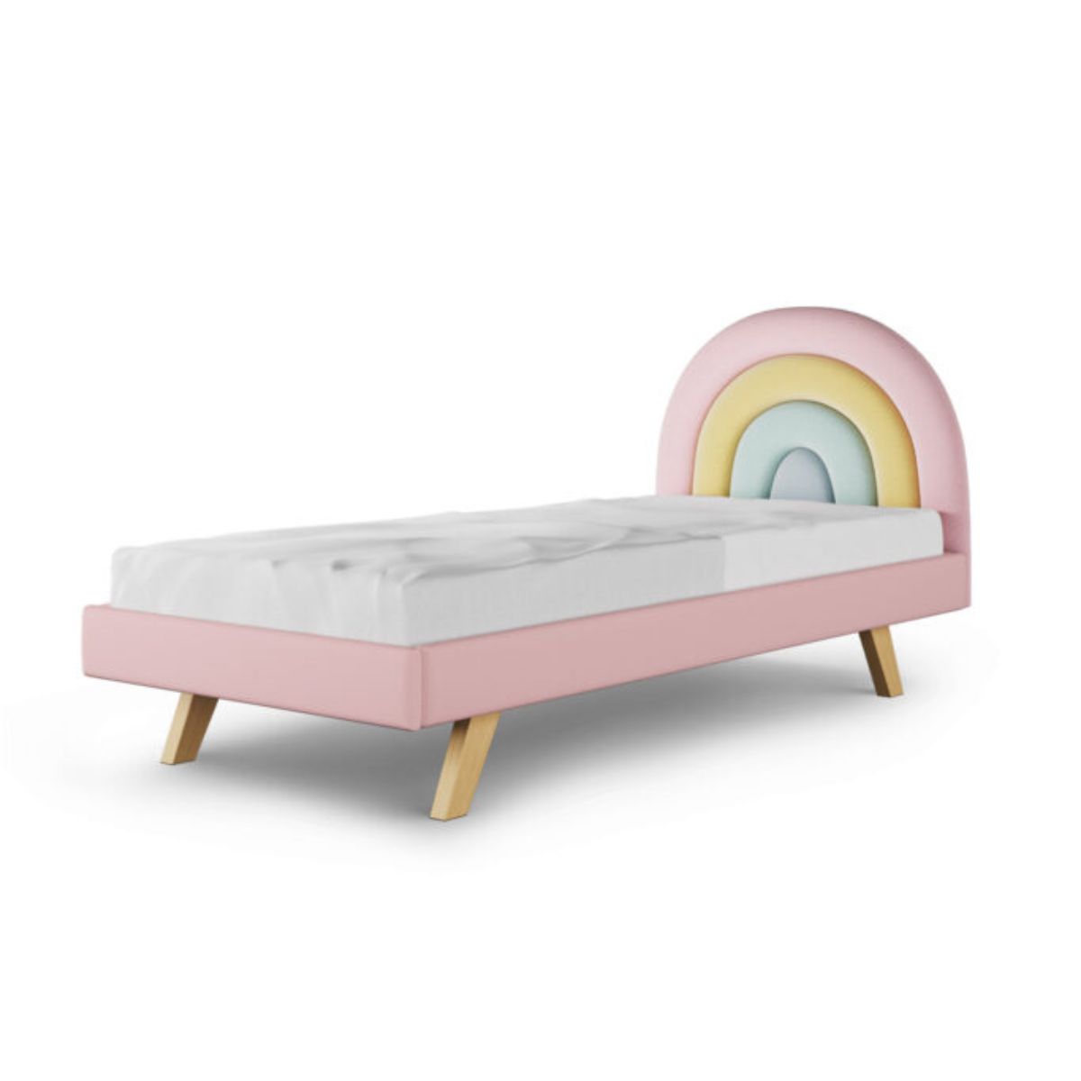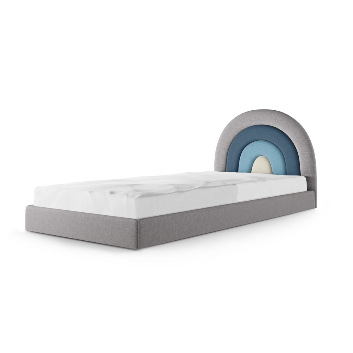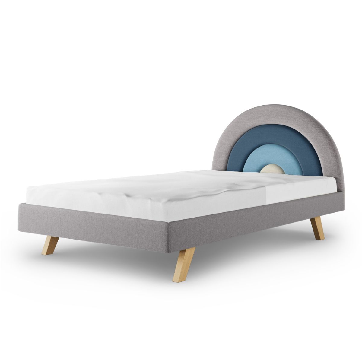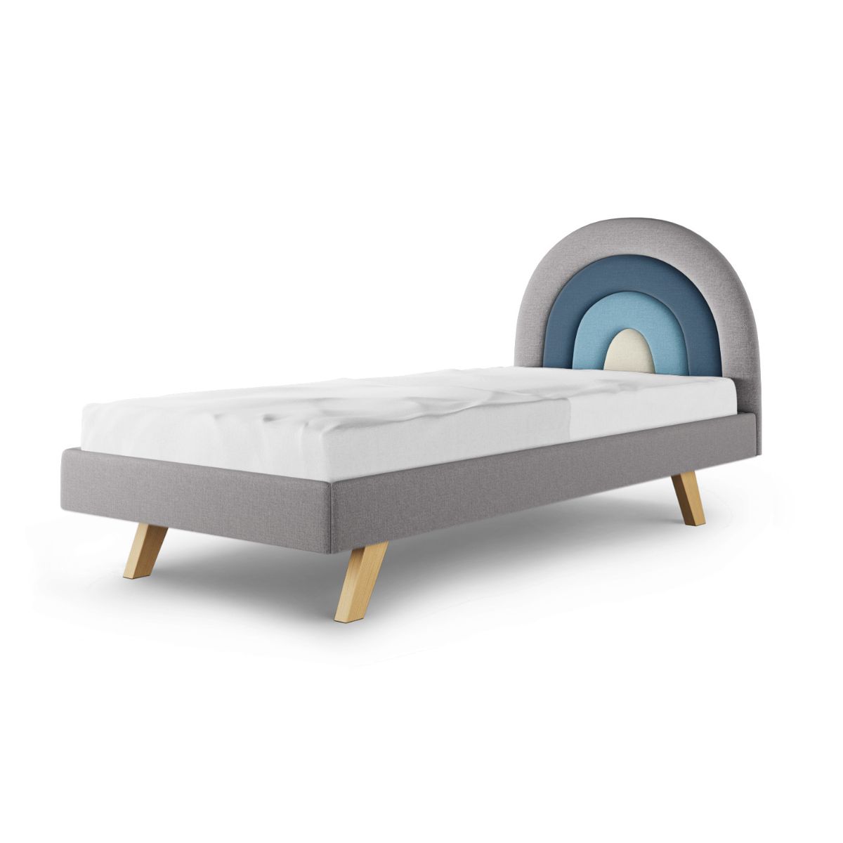 Zagłówek w kształcie tęczy, który dodaje łóżku wyjątkowego charakteru, dostępny jest w czterech starannie dobranych paletach kolorystycznych. Możesz wybierać spośród: