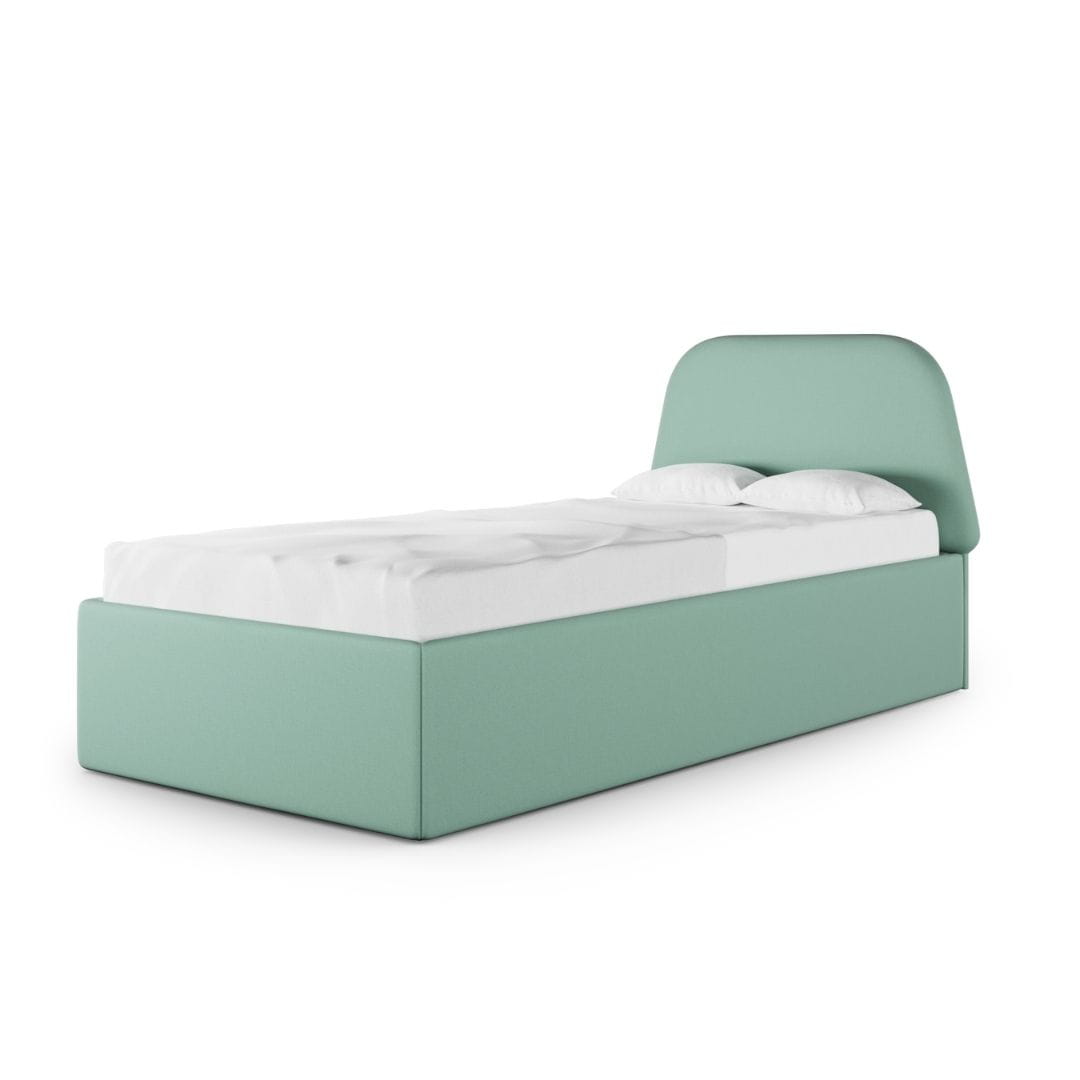 Łóżko Trapez Box Texti jest w całości tapicerowane. Wybierz kolor łóżka idealnie pasujący do wnętrza - do wyboru z szerokiej palety materiałów z kilku kolekcji (wpisz wybrany kolor w komentarzu do zamówienia).