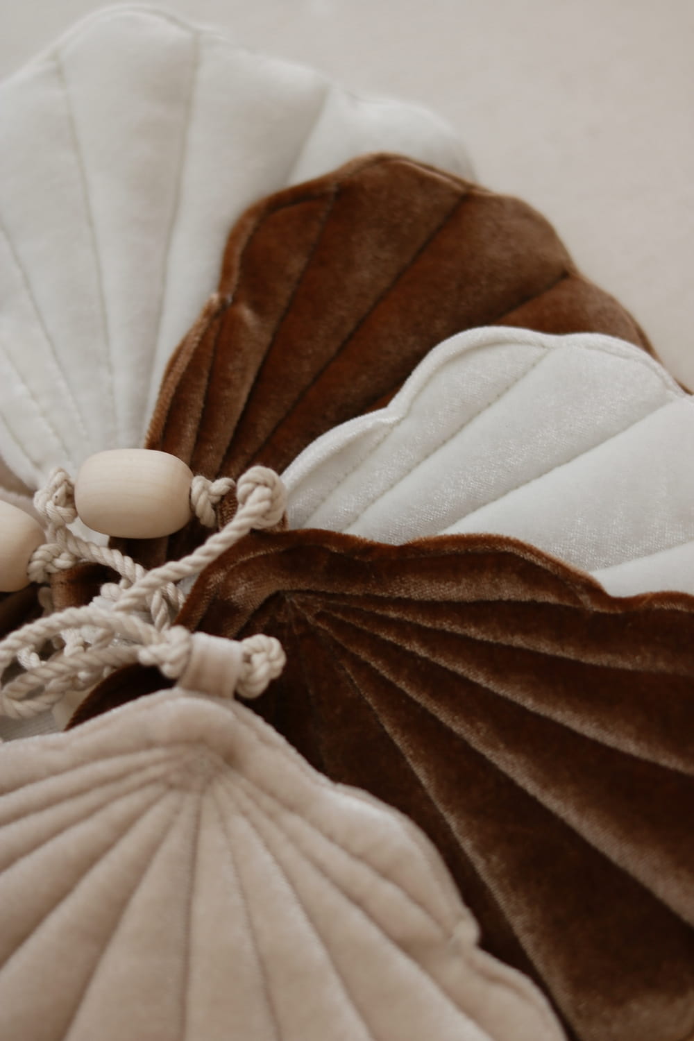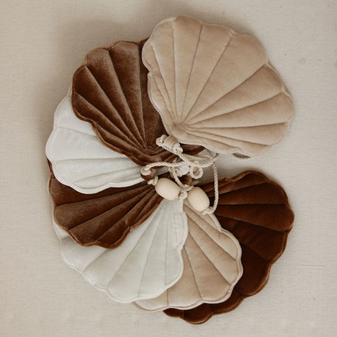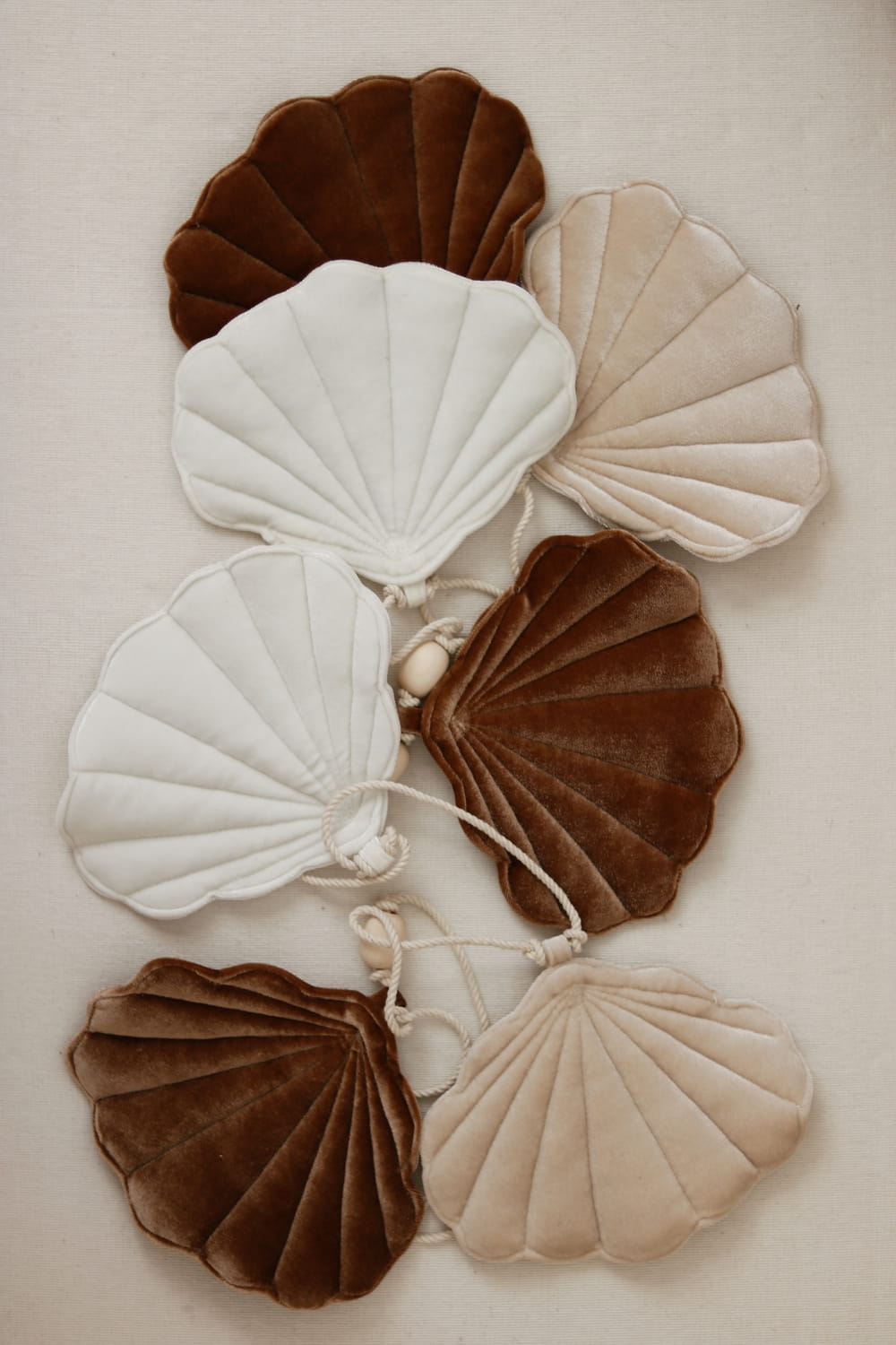 Girlanda złożona z siedmiu aksamitnych muszelek w idealnie dobranych odcieniach kolorystycznych to oryginalna propozycja na dekorację wnętrza.