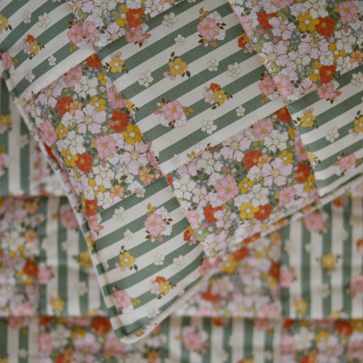 - wzór z kwadratowych pól: delikatne kwiatuszki + pastelowe paseczki