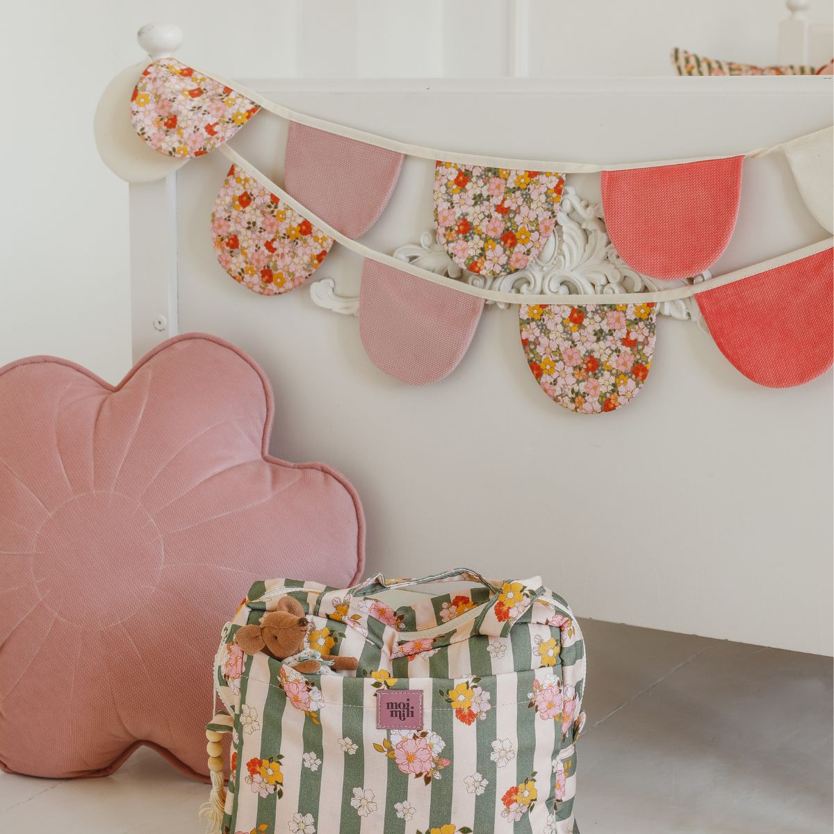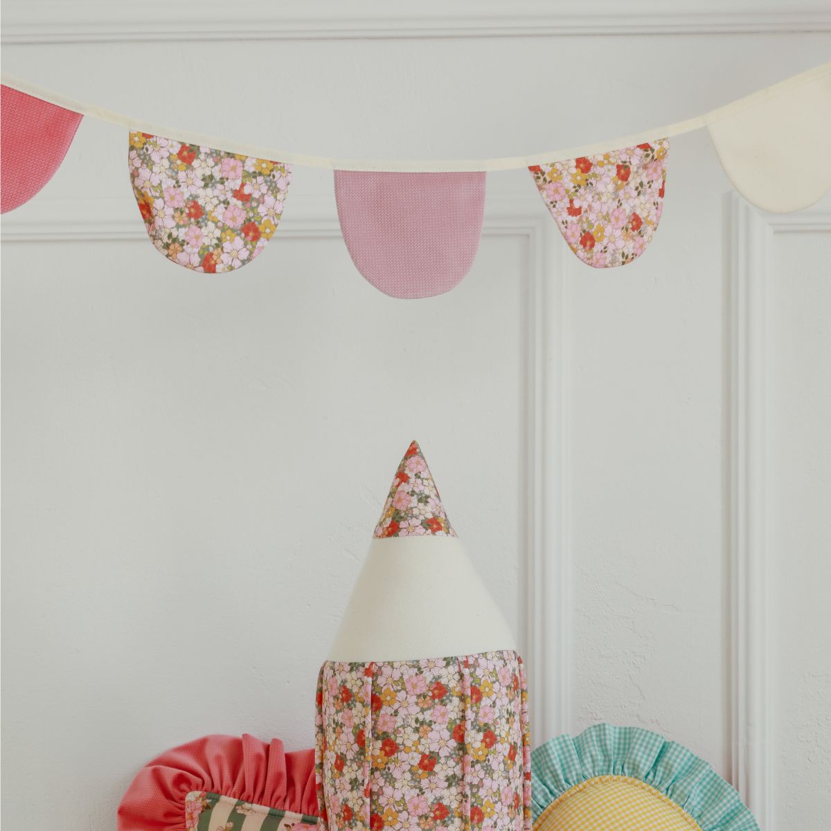 Girlanda z bawełny i velvetu – subtelna dekoracja do pokoju dziecka