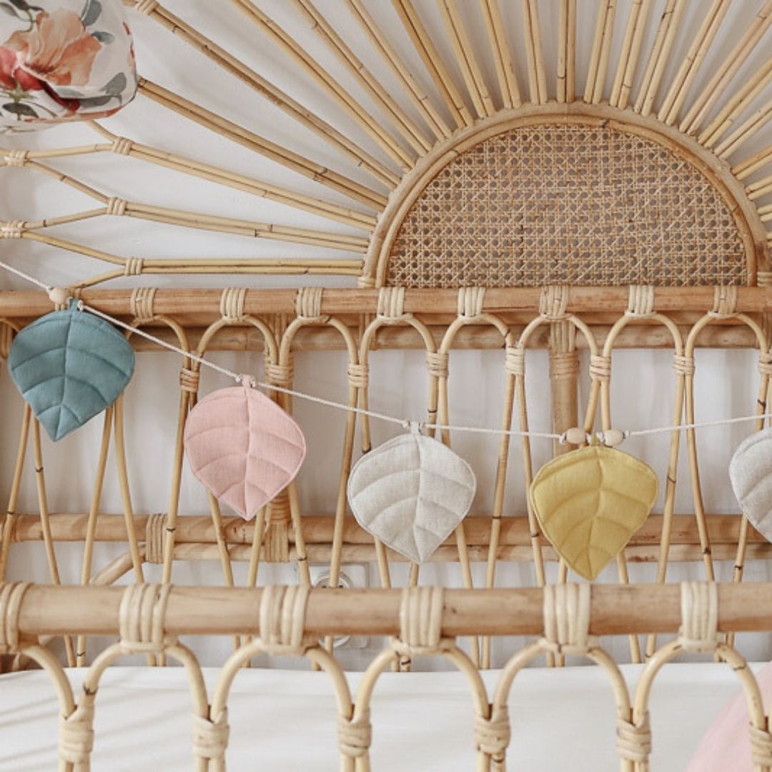 Girlanda złożona z pięciu lnianych listków w idealnie dobranych kolorach to oryginalna propozycja na dekorację wnętrza.