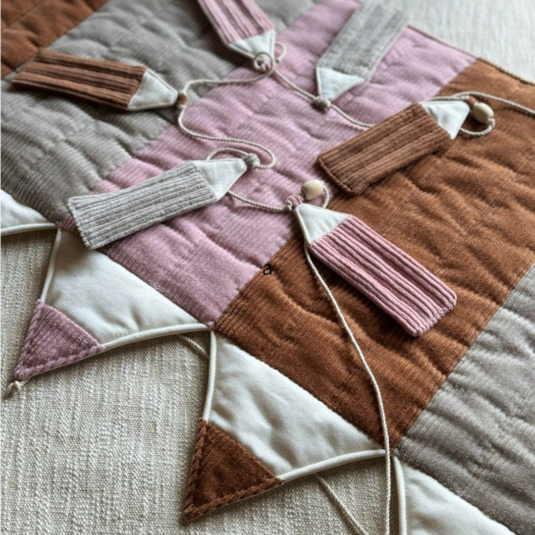 Mata Kredka nie tylko zapewnia wygodną i miękką przestrzeń do zabawy, ale też wspaniale dopełnia wystrój pokoju, stając się centralnym punktem każdej dziecięcej aranżacji. Świetnie sprawdza się jako mata na podłogę, narzuta na łóżko lub pled na pufy, skrzynie i inne meble, nadając im przytulny, kreatywny wygląd.