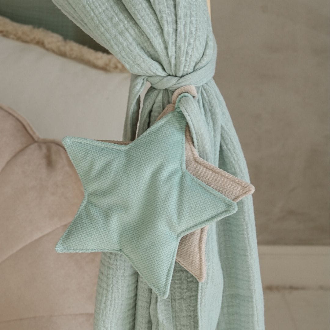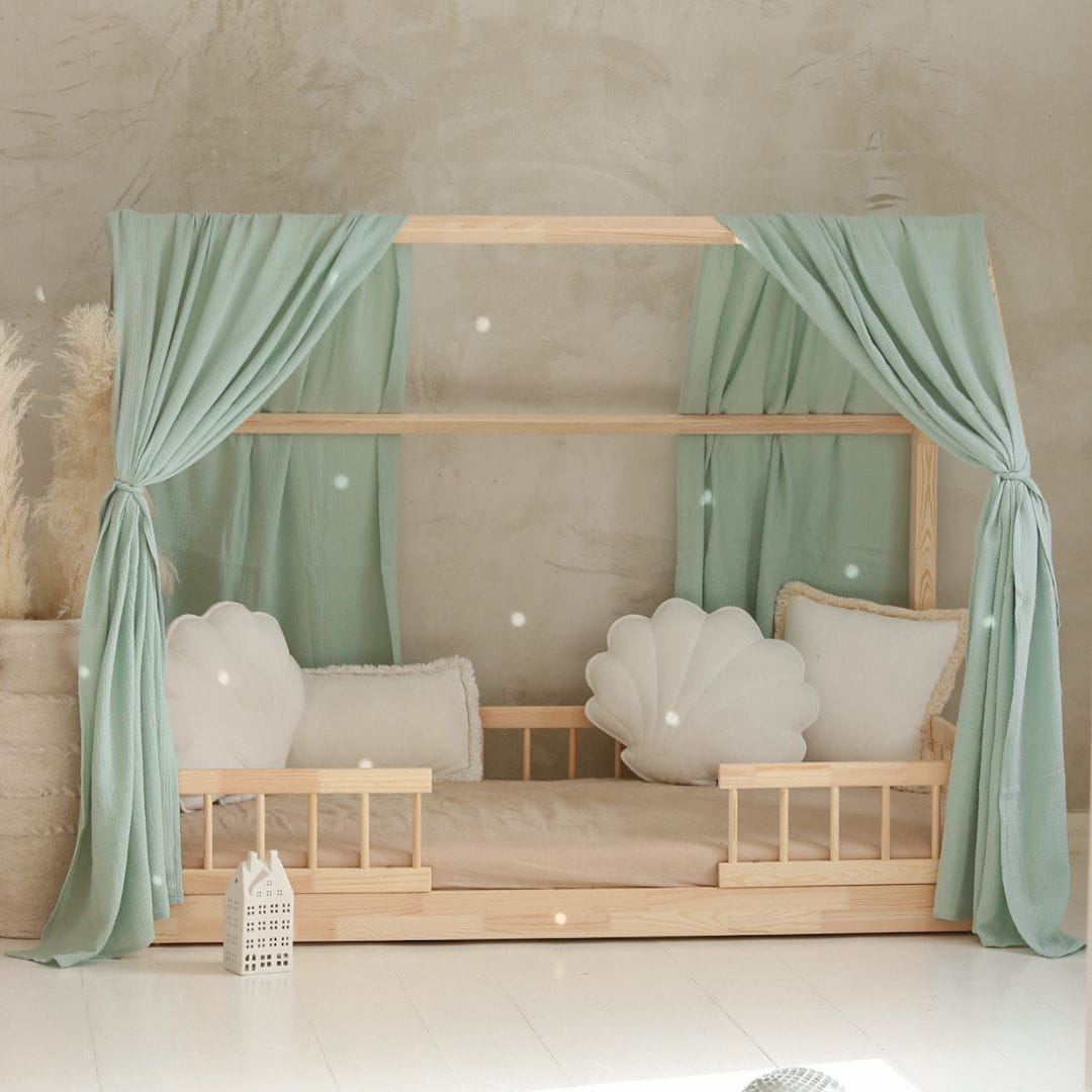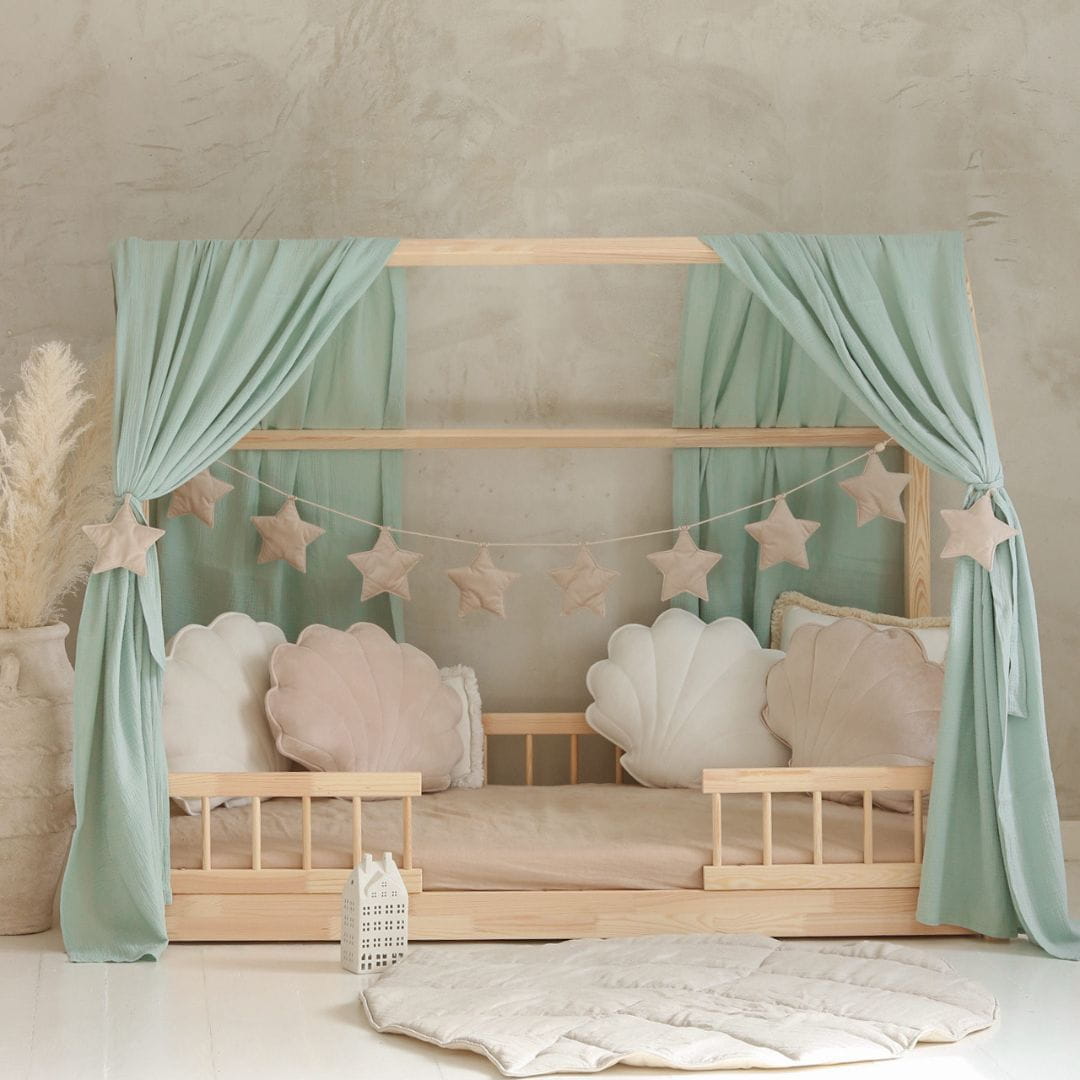 MOI MILI - MUŚLINOWY BALDACHIM NA ŁÓŻKO DOMEK MIĘTA - KOMPLET 2 SZT