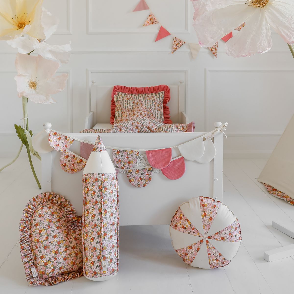 Wersja w kwiaty to propozycja dla osób, które cenią naturalne, delikatne motywy inspirowane przyrodą. Kwiatowy wzór dodaje świeżości, koloru i radosnego charakteru. Świetnie współgra z pastelami, naturalnymi materiałami oraz tkaninami typu bouclé, tworząc harmonijną i przytulną przestrzeń.