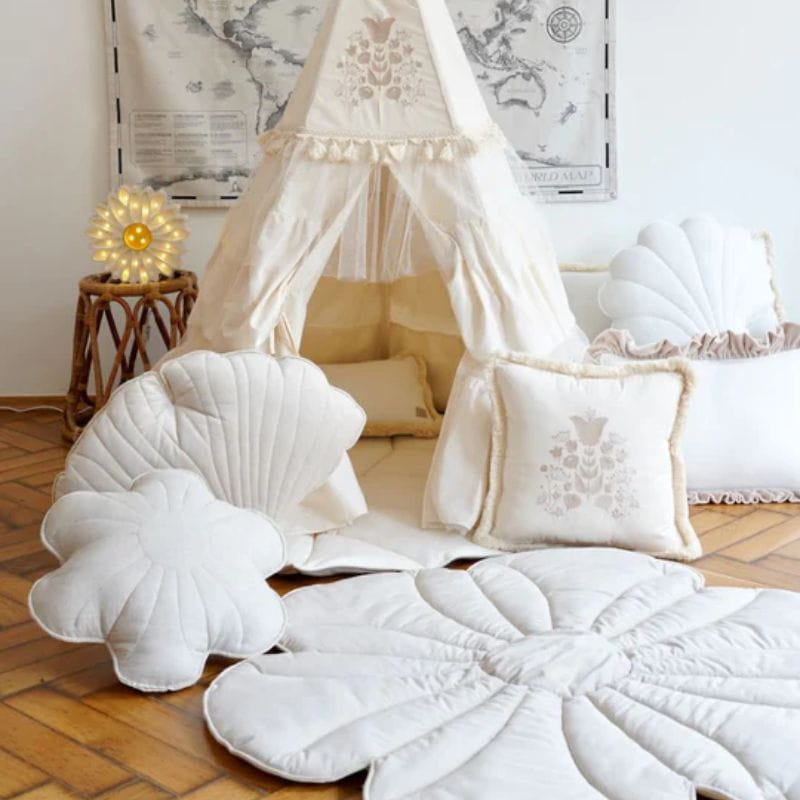 Oryginalne poduszki kwiaty to propozycja na dekorację dziecięcego łóżeczka czy rattanowego fotela. Sprawdzi się również jako puf czy podparcie pleców podczas czytania książki. Ozdobna poduszka będzie super wykończeniem kącika dla dziecka z matą i baldachimem lub uzupełnieniem namiotu tipi.