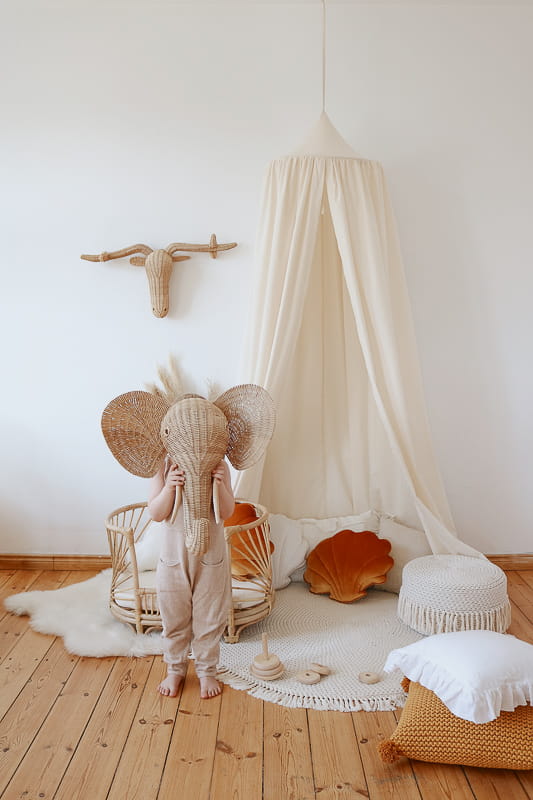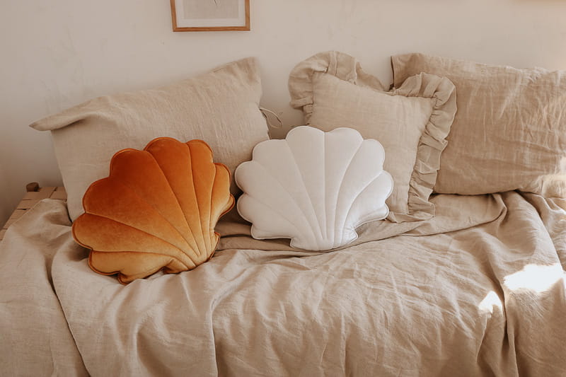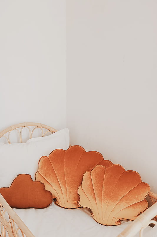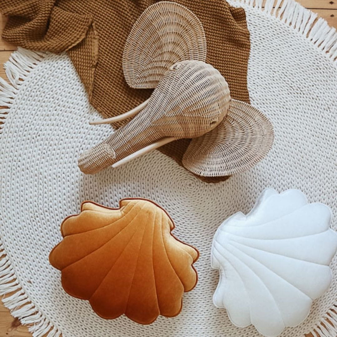 Oryginalne poduszki w kształcie muszli to propozycja na dekorację dziecięcego łóżeczka czy rattanowego fotela. Sprawdzi się również jako puf czy podparcie pleców podczas czytania książki. Ozdobna poduszka będzie super wykończeniem kącika dla dziecka z matą i baldachimem lub uzupełnieniem namiotu tipi.