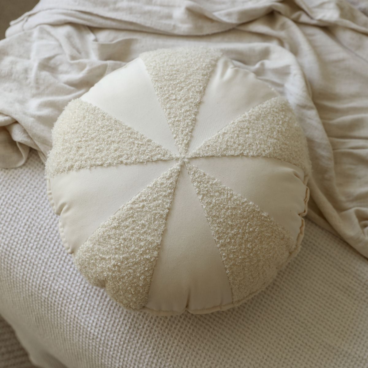 Poduszka patchworkowa boucle do pokoju dziecka – oryginalny design w kształcie dropsa
