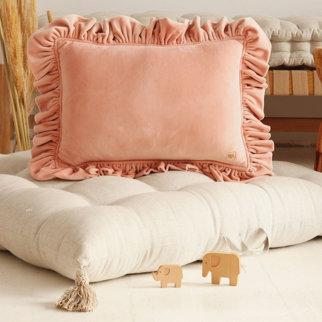 MOI MILI - PODUSZKA SOFT VELVET Z FALBANKĄ MORELOWA