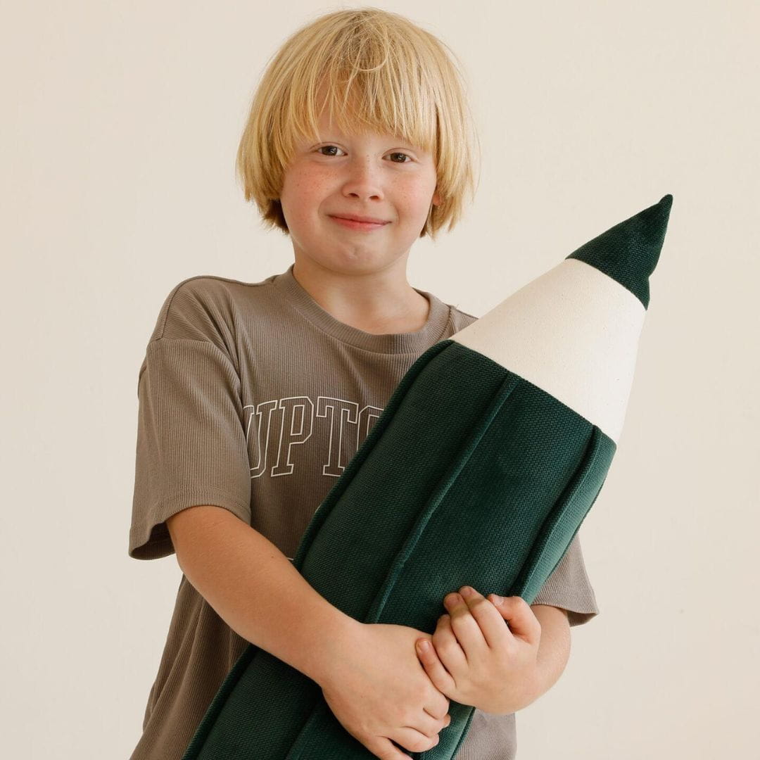 Poduszka Kredka to duży wałek w kształcie kredki, który idealnie wpasowuje się do pokoju dziecięcego młodego przedszkolaka i ucznia. Sprawdzi się jako unikatowy dodatek do pokoju dziecka, nastolatka czy salonu. Wykonana z velvetu, przeszyta dodatkowo kilka razy, poduszka nie tylko świetnie wygląda, ale także zapewnia komfort i dobrą zabawę.
