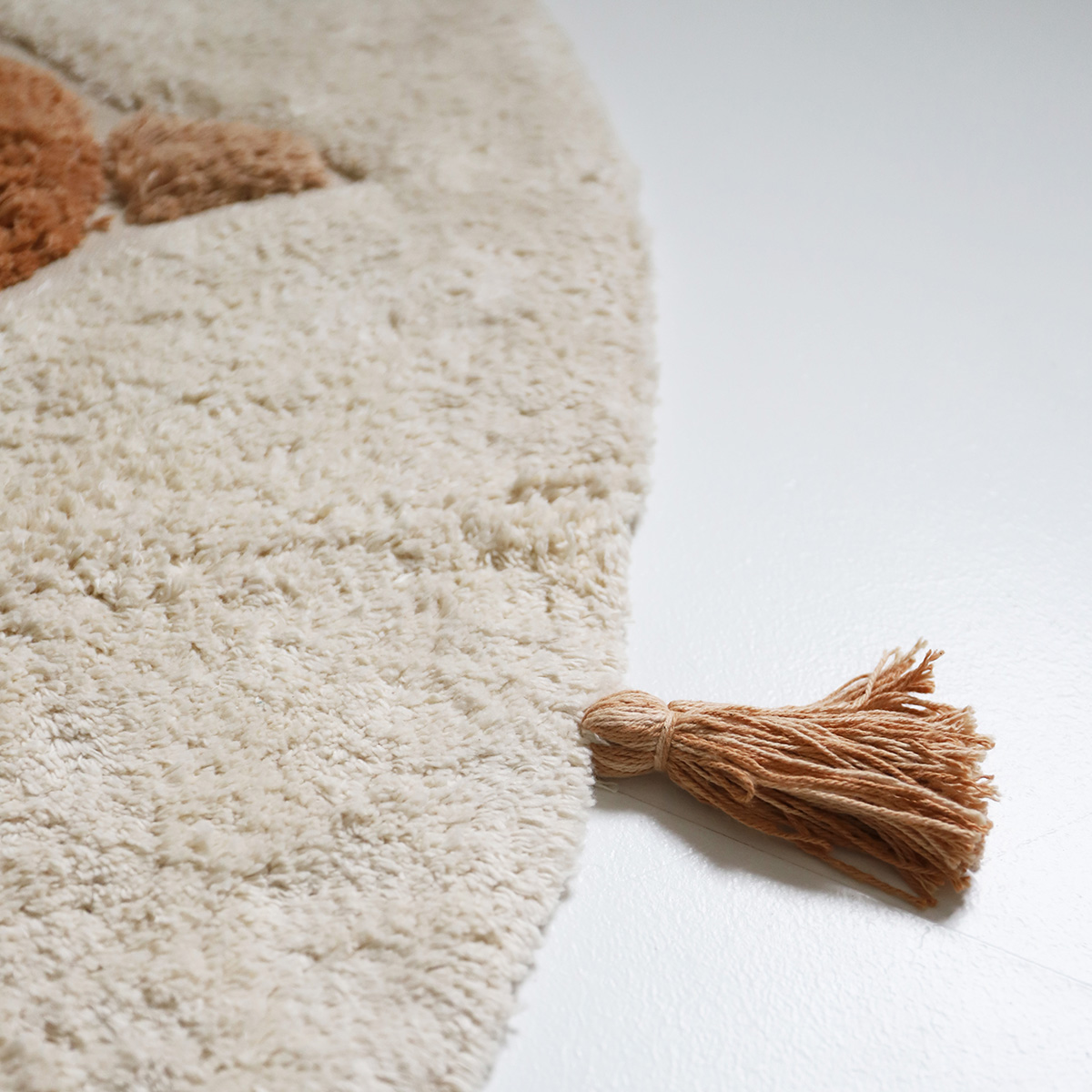 Brązowy motyw ptaka na tle złamanej bieli wprowadza do wnętrza harmonię, a pompony wokół brzegu dodają lekkości i radosnego akcentu. To idealny wybór zarówno do pokoju niemowlaka, jak i starszego dziecka.