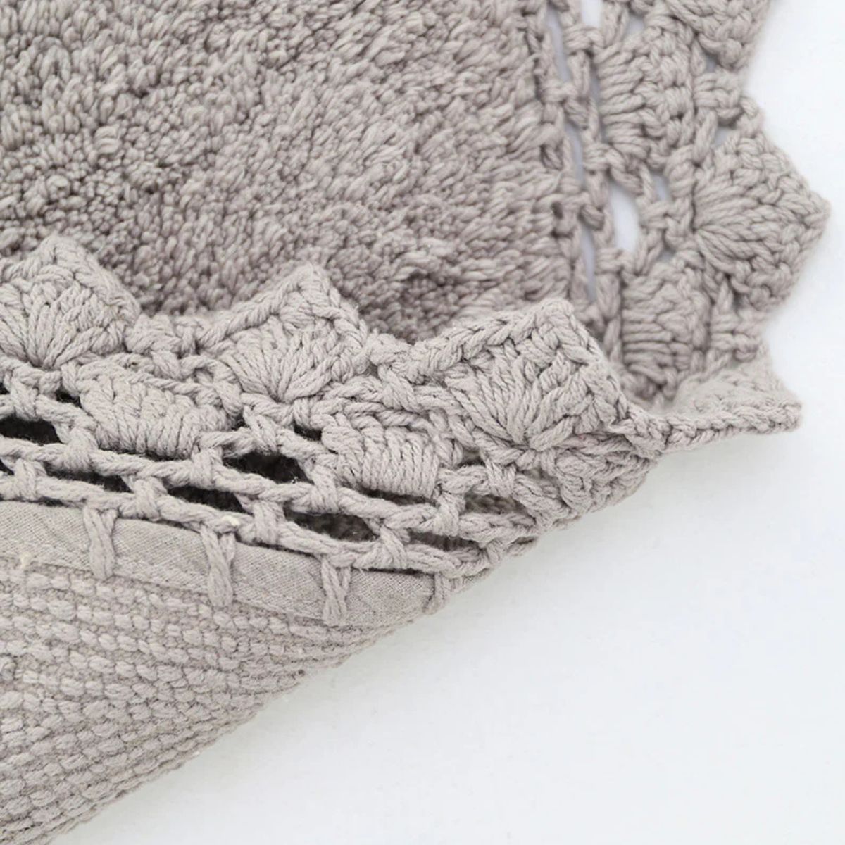 Dywan Perla to okrągły, miękki i komfortowy dywan, którego wyjątkowe wykończenia w stylu koronkowym zostały wykonane ręcznie na szydełku. Doskonale sprawdzi się w pokoju dziecięcym, tworząc przytulną i elegancką przestrzeń.