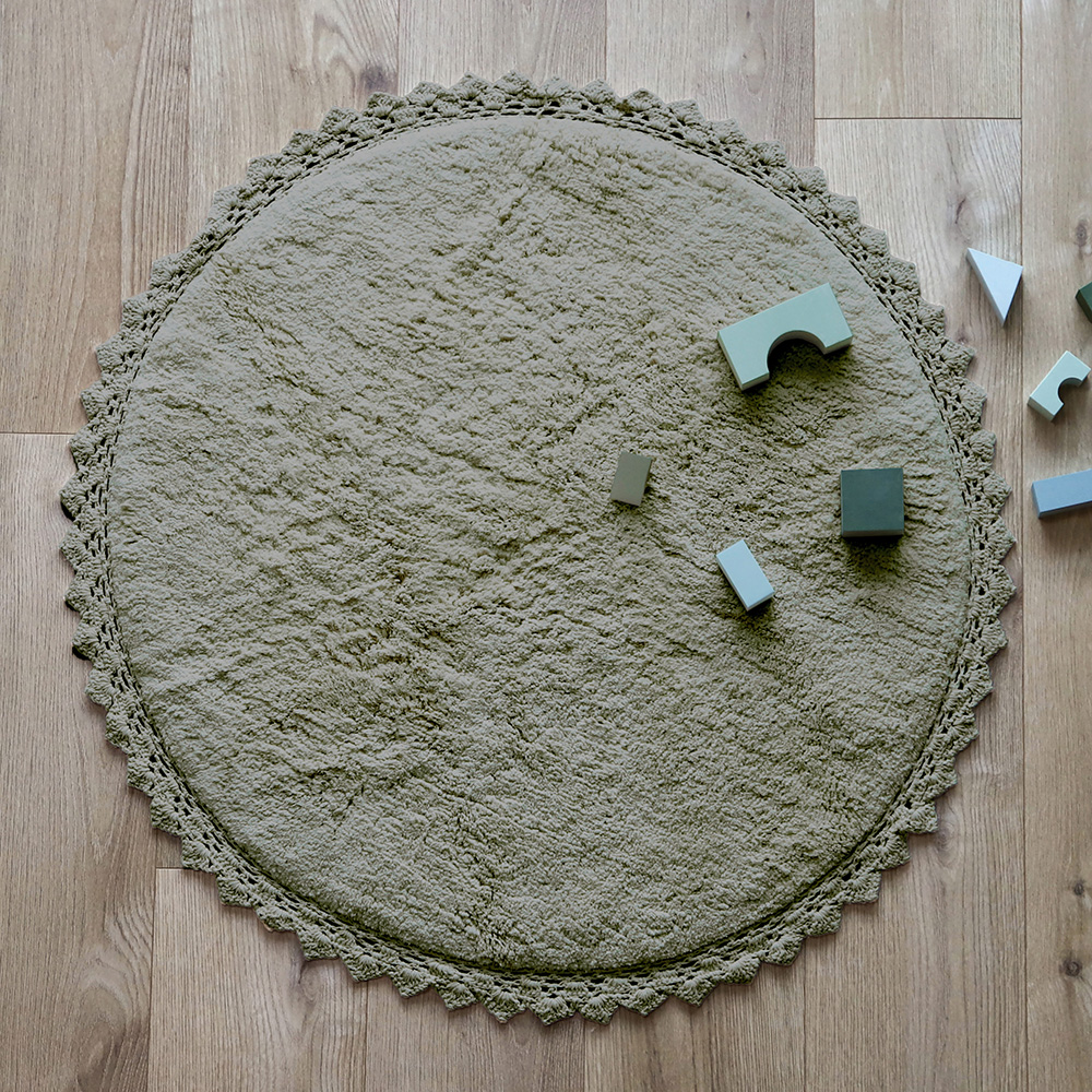NATTIOT - DYWAN DZIECIĘCY OKRĄGŁY Z WYKOŃCZENIEM NA SZYDEŁKU PERLA OLIVE