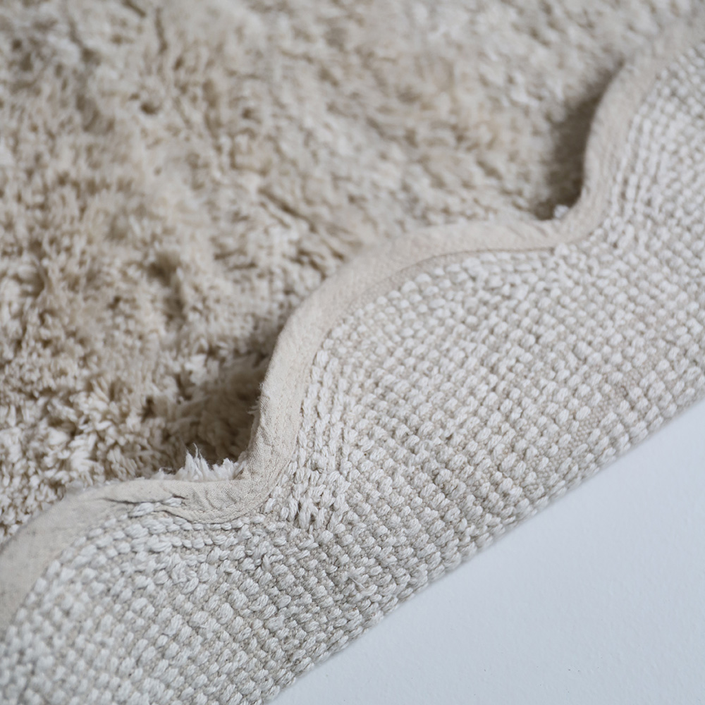 Dywan Marisa ecru to połączenie ponadczasowej elegancji i subtelnego uroku. Owalny kształt z ozdobnym festonowym wykończeniem nadaje mu miękkości i wyrafinowanego charakteru.