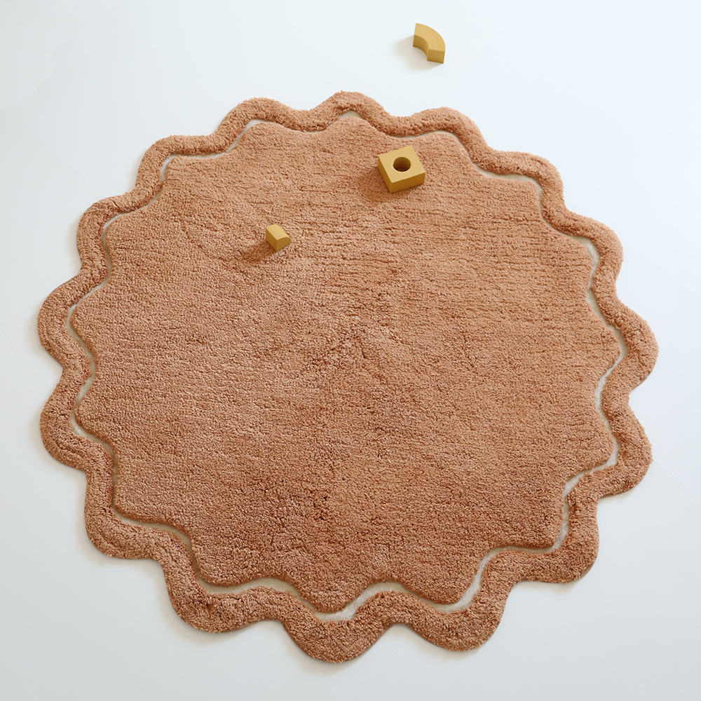 Dywan Sweet April to okrągły, miękki i komfortowy dywan wykonany w 100% z bawełny, idealny do pokoju dziecięcego. Jego gruby i przyjemny w dotyku włos zapewnia komfort podczas zabawy, nauki czy odpoczynku, a delikatnie falowane brzegi dodają dywanowi subtelnej elegancji i wyjątkowego charakteru.