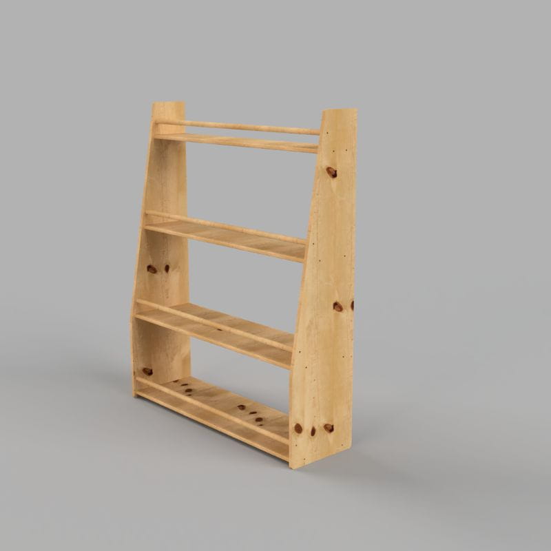 Biblioteczka Montessori wykonana jest ze sklejki brzozowej o grubości 15 mm. Całość malowana jest natryskowo lakierem bezbarwnym o naturalnym i bezpiecznym składzie dla dzieci przeznaczonym do drewnianych zabawek. Wszystkie krawędzie są zaokrąglone i szlifowane ręcznie.