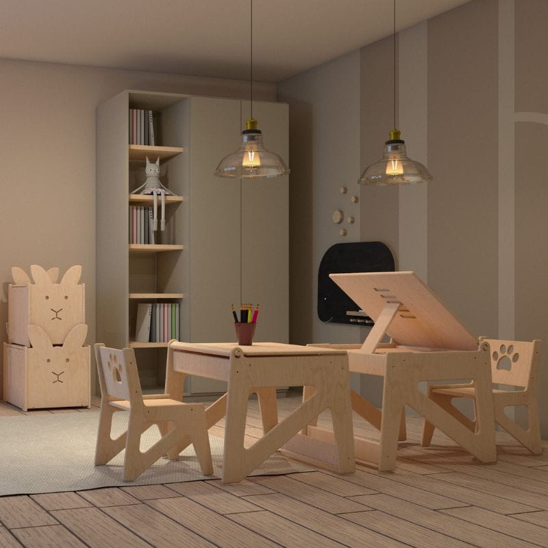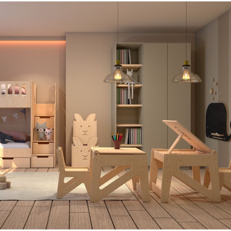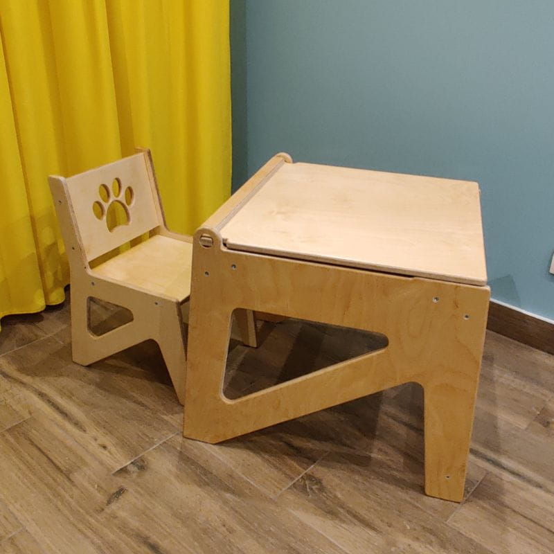 Przyjazny dla dziecka, solidny i wytrzymały zestaw dla przedszkolaka idealnie wpisuje się w system nauki Marii Montessori. Mebelki z pewnością posłużą dzieciom do zabawy (malowania, rysowania, układania klocków), czy też do spożywania posiłków.