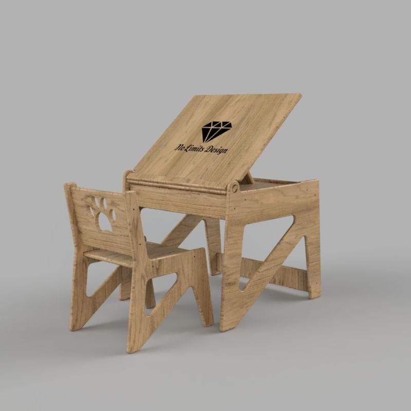 Zestaw stolik z krzesełkiem No Limits Design wykonany jest ze sklejki liściastej o grubości 15mm. Całość malowana jest natryskowo lakierem bezbarwnym o naturalnym i bezpiecznym składzie dla dzieci przeznaczonym do drewnianych zabawek. Wszystkie krawędzie są zaokrąglone i szlifowane ręcznie.