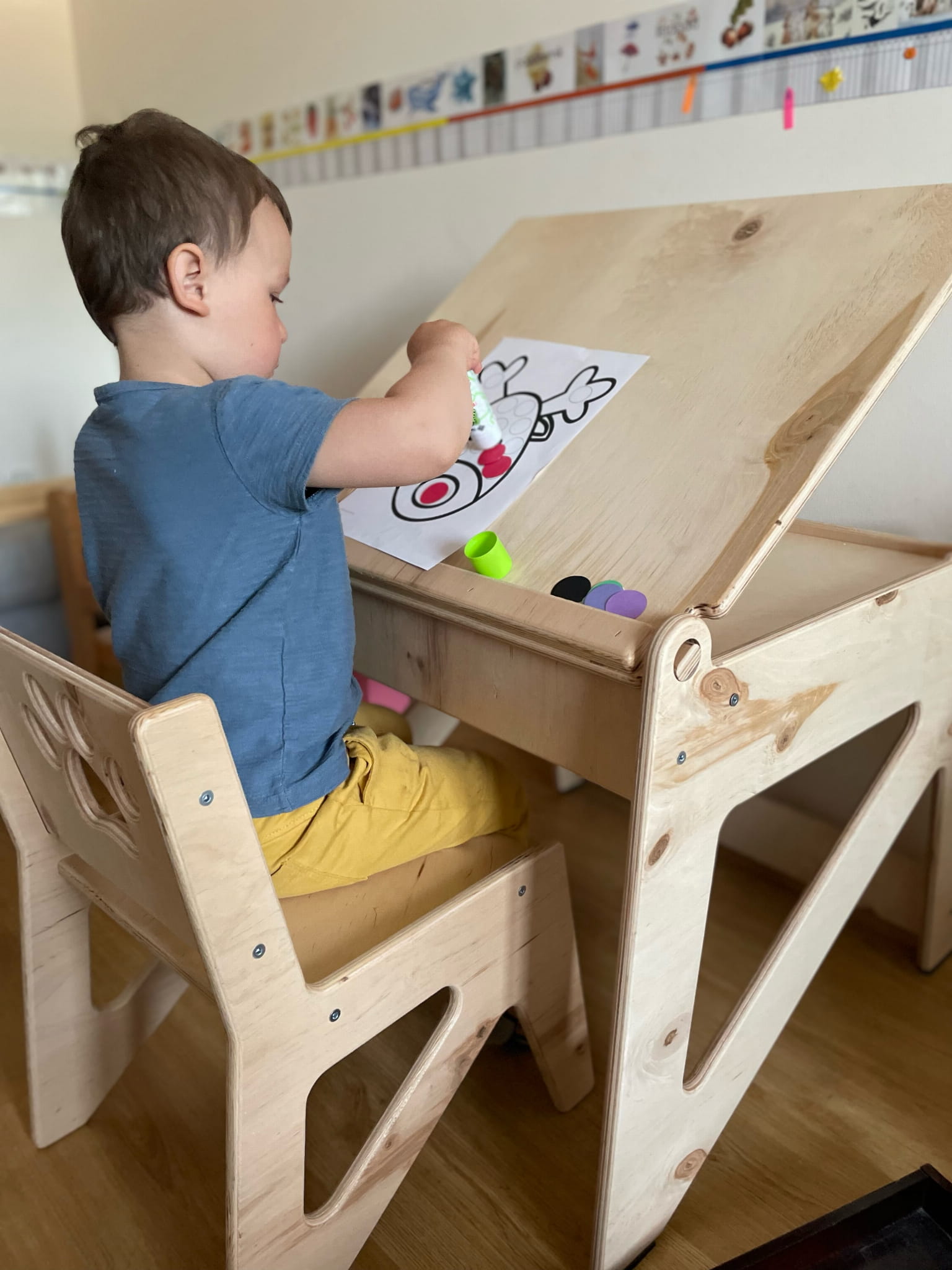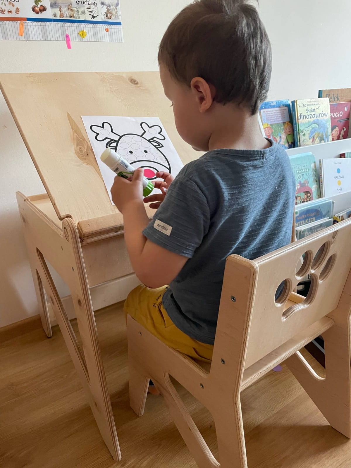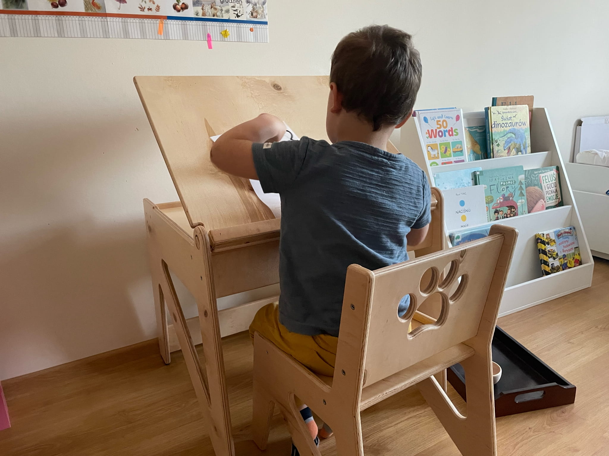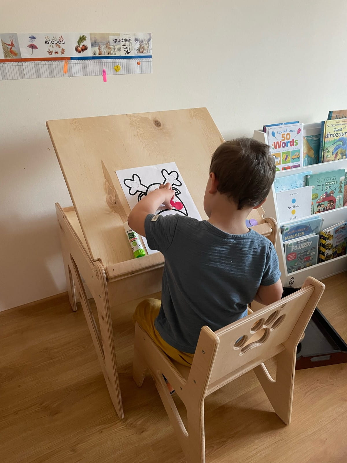 Drewniany stolik i krzesełko dla przedszkolaka - meble Montessori dla dziecka