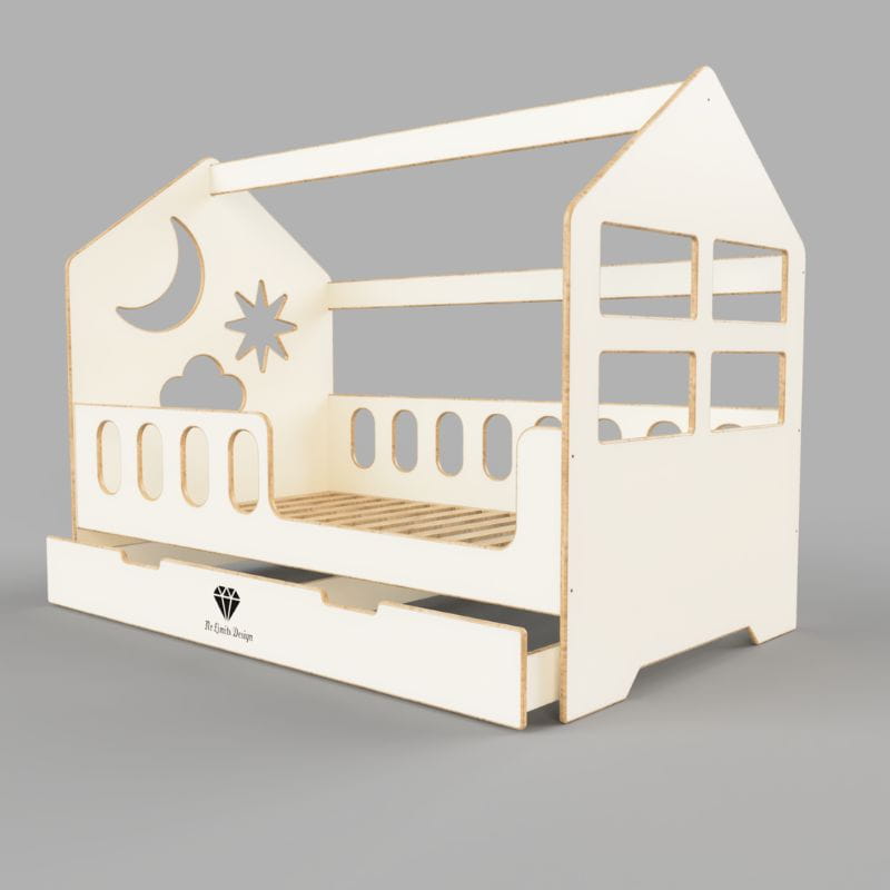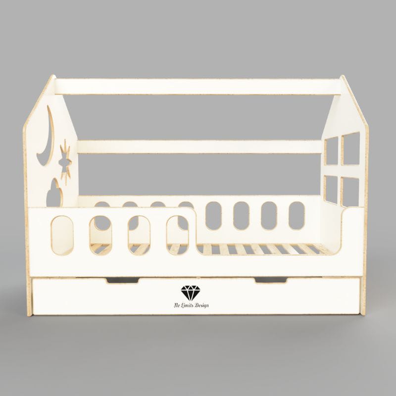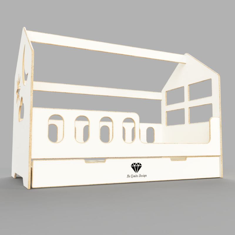 Łóżko domek No Limits Design wykonane jest z wysokiej klasy płyty MDF o grubości 18mm. Wszystkie krawędzie są zaokrąglone i szlifowane ręcznie.