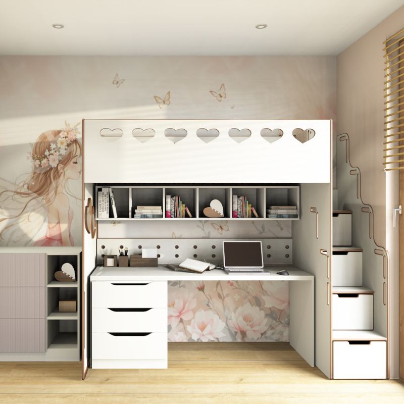 Białe łóżko dziecięce na antresoli Corazon - pokój marzeń dziewczynki