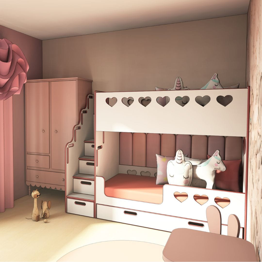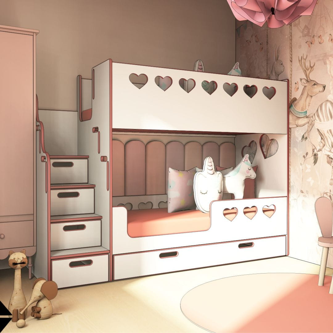 Białe łóżko piętrowe do pokoju rodzeństwa polskiej marki No Limits Design to model łóżka o nowoczesnym designie. Zapewni wygodne miejsce do snu, ale także stworzy przyjemną atmosferę w pokoju rodzeństwa. Ciekawy design sprawi, że Twoje dzieci będą chętniej zasypiały w swoim łóżeczku. Łóżko piętrowe dla dziewczynek z serduszkami to rozwiązanie bezpieczne, ale też atrakcyjne i funkcjonalne.