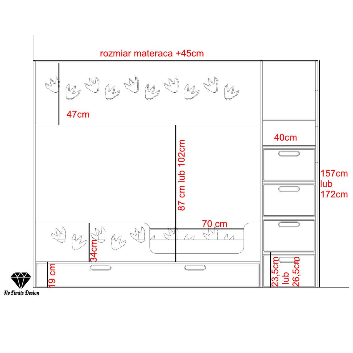 - całkowita długość: + 45 cm do wybranej długości łóżka