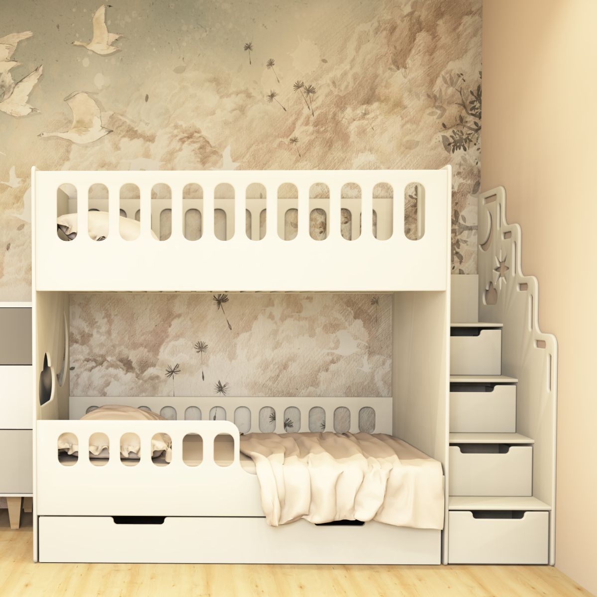 NO LIMITS DESIGN - ŁÓŻKO PIĘTROWE ZE SCHODKAMI NIEBO BIAŁE