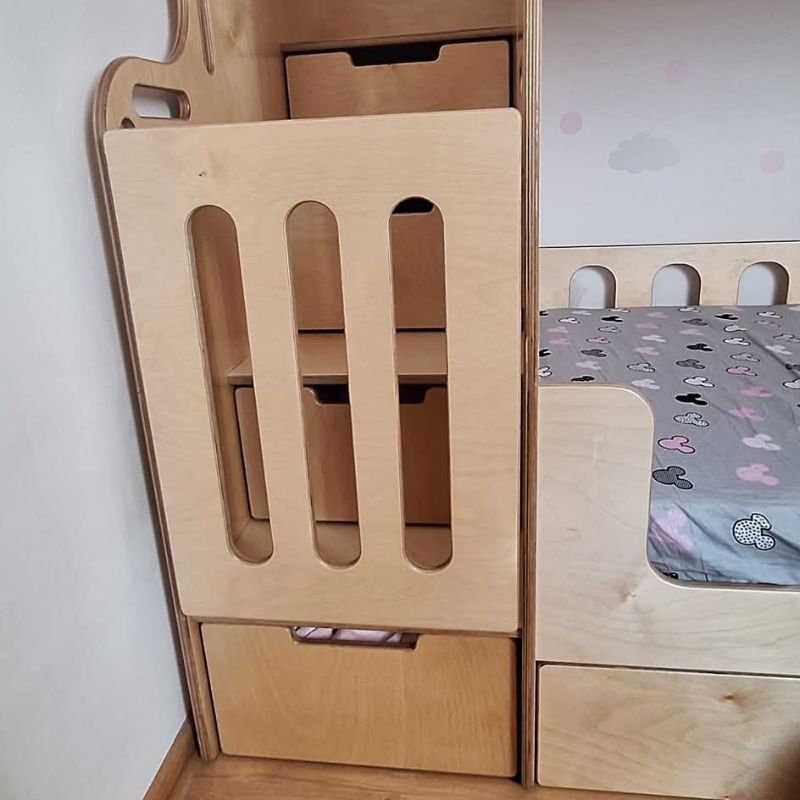 Szuflada w łóżku przyda się w szczególności w małych pokoikach, w których brakuje miejsca na przechowywanie zabawek czy innych dziecięcych akcesoriów. Szuflada może być jedna lub dwie osobne. Istnieje również możliwość zamówienia łóżka piętrowego z szufladą z funkcją spania, co daje nam dodatkowe łóżko dla gości. W takim wypadku do zestawu dołączona jest szuflada ze stelażem. Do szuflady należy wybrać materac o 10 cm krótszy niż długość wybranego łóżka. Szuflada wysuwana jest na dwóch tylnych gumowych kółkach.
