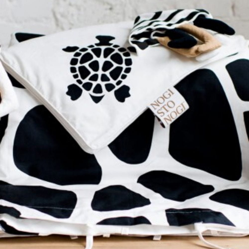Pościel dla niemowlaka Nogistonogi to nie tylko wygodna i mięciutka kołderka do spania, ale również świetna zabawa! Pościel Żółw jest starannie wykończona końcówkami sensorycznymi, lamówką oraz ma dużą metkę, którą Twoje dziecko jest w stanie łatwej chwycić.
