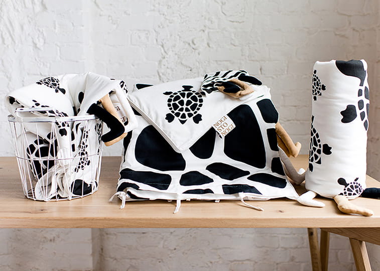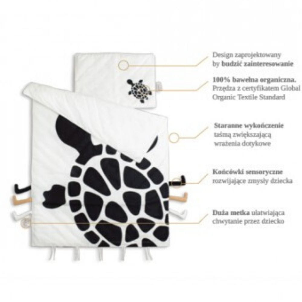 Cała kolekcja Żółw została opracowana z psychologami dziecięcymi, aby budzić zainteresowanie niemowląt. Niemowlak widzi tylko takie kształty i kontury, które potrafi dostrzec - do 3 miesiąca życia Twoje dziecko reaguje na duże kształty w czerni i bieli.